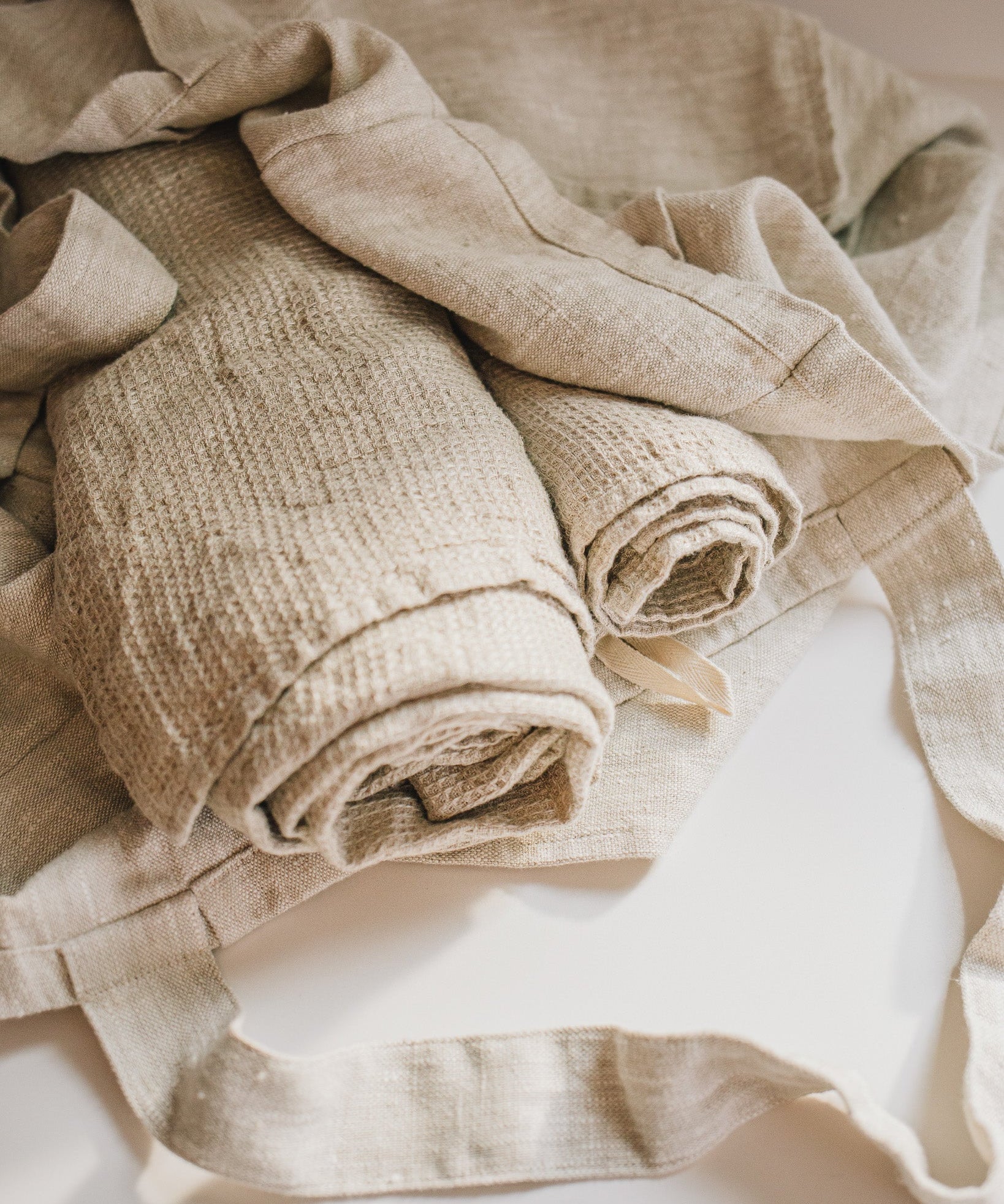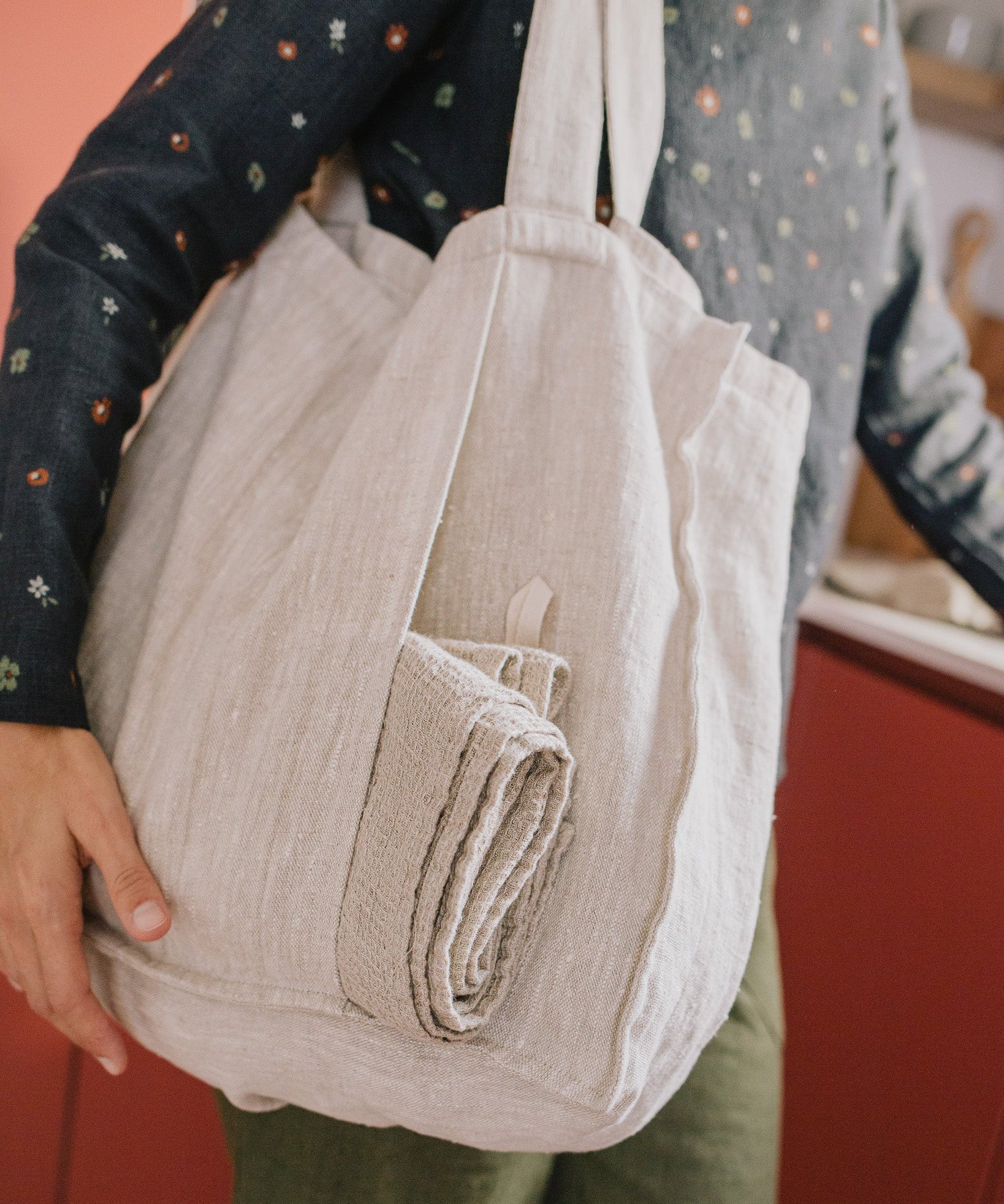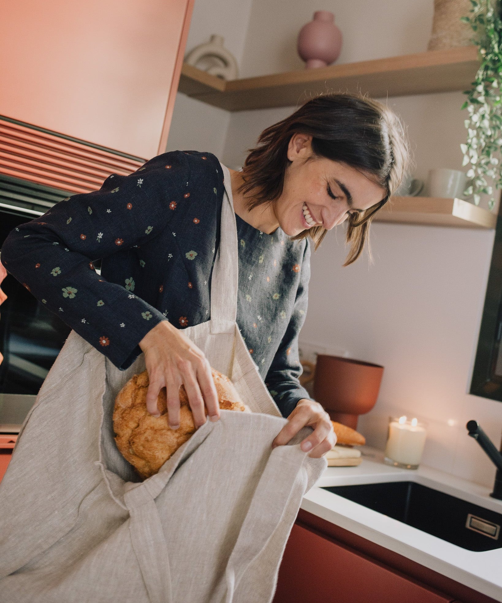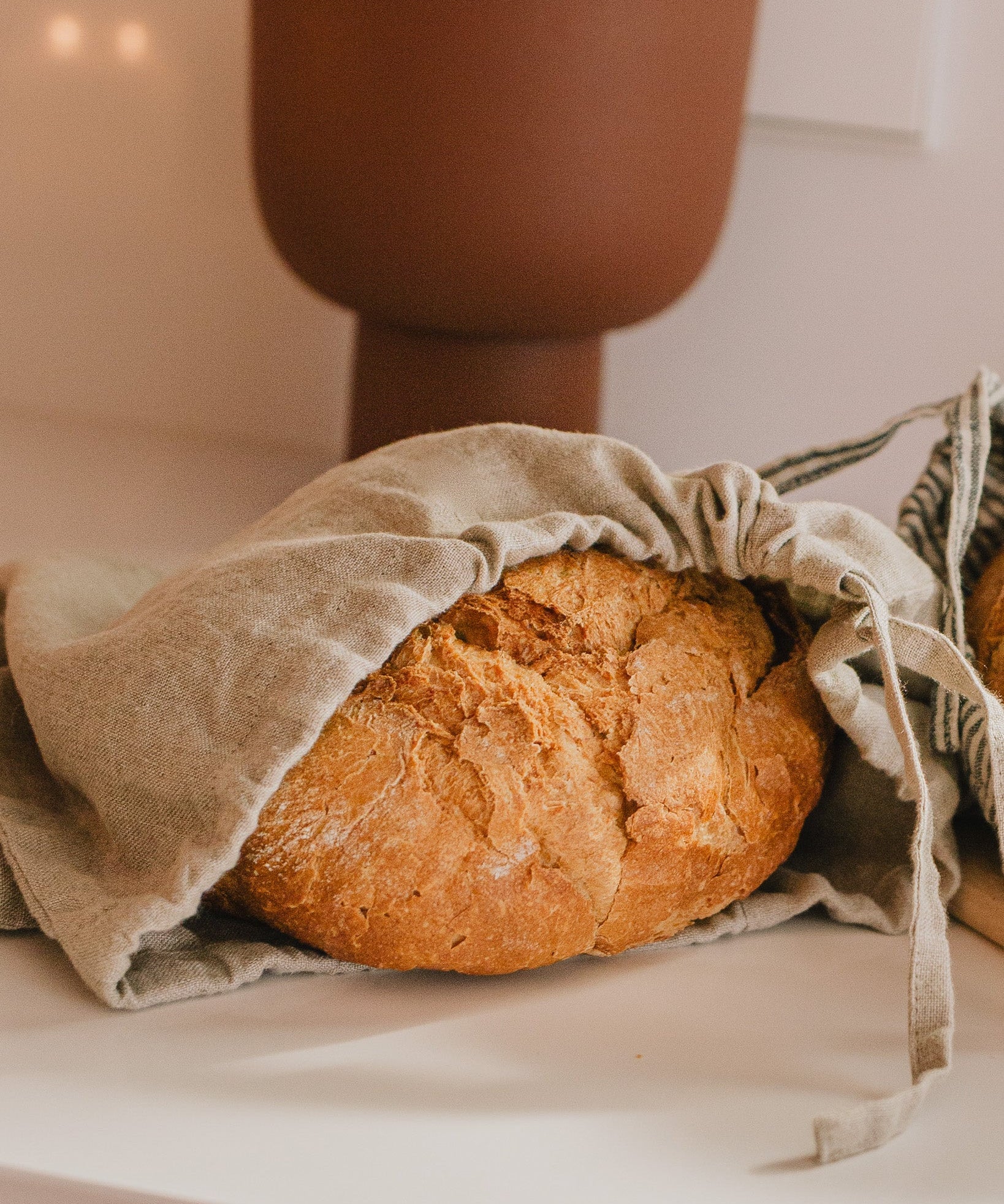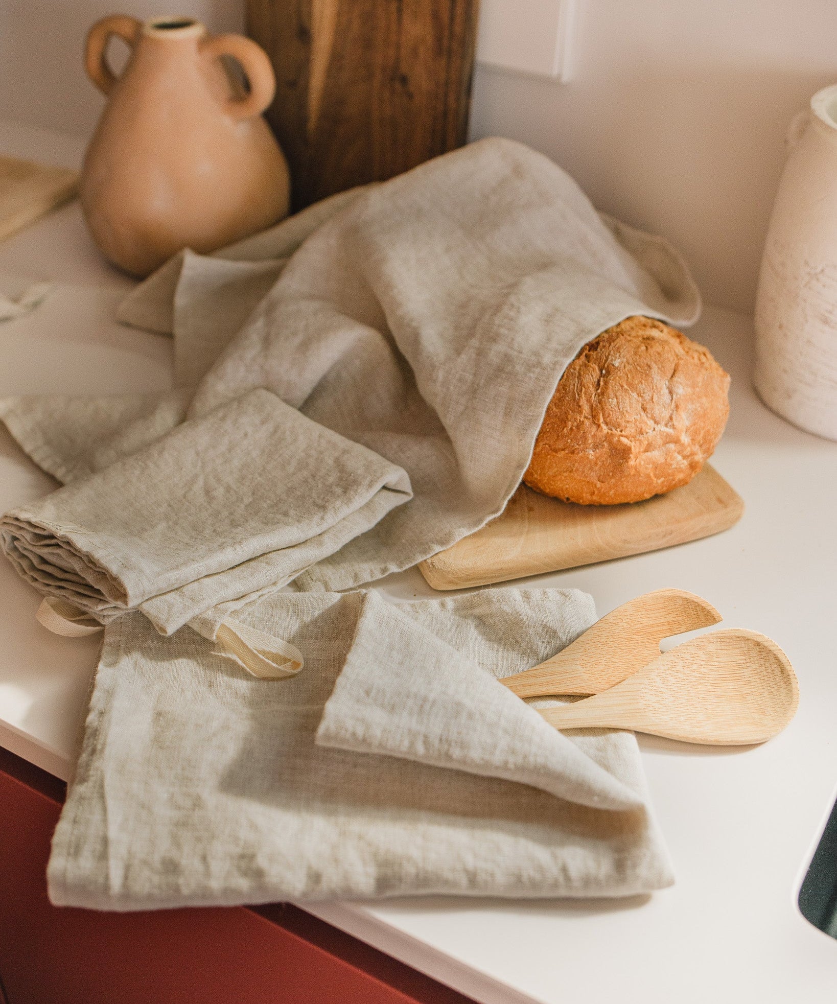 Set of 2 Linen Bread Bags (loaf + baguette) in natural linen