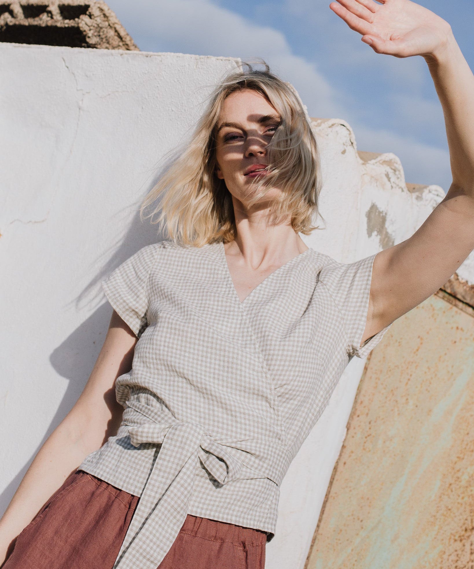 Our linen wrap tops are the epitome of style, infusing a delicate yet enduring charm into your wardrobe. This endlessly flattering wrap top complements a wide range of body shapes and sizes, effortlessly blending classic and feminine aesthetics with an underlying simplicity that allows you to both feel the superior quality and express your unique style.