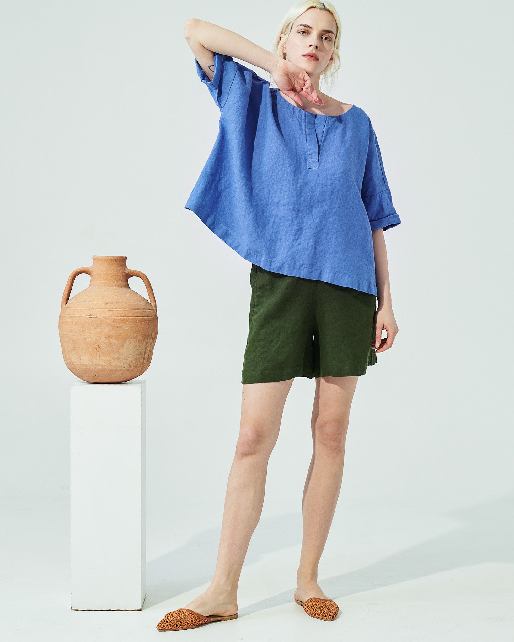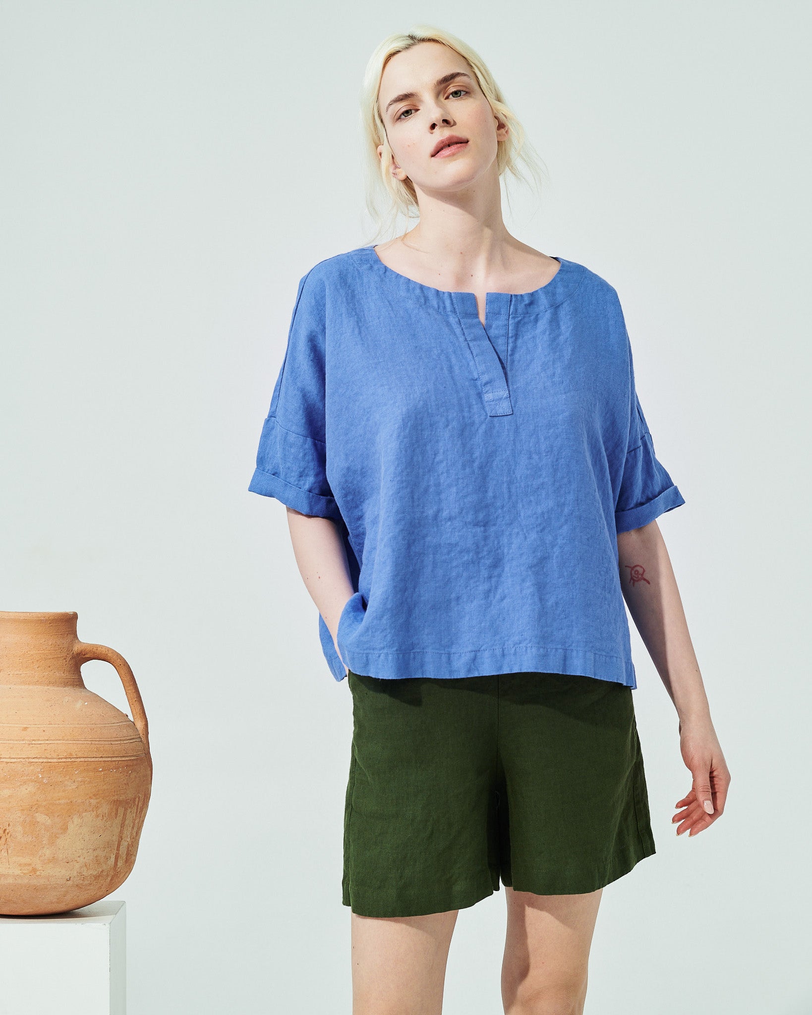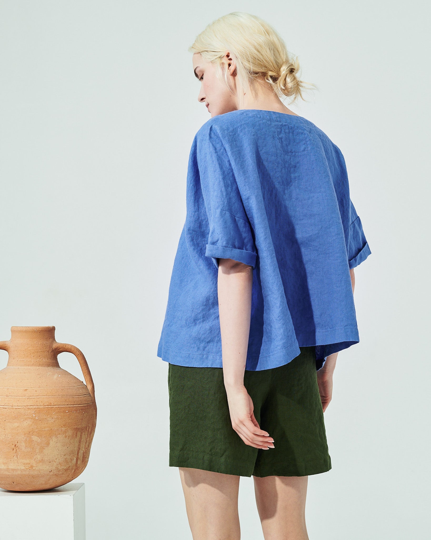 • Oversized boxy-fit linen top for maximum comfort during hot days. Airy cut prevents the fabric from clinging to your body, allowing for better airflow.