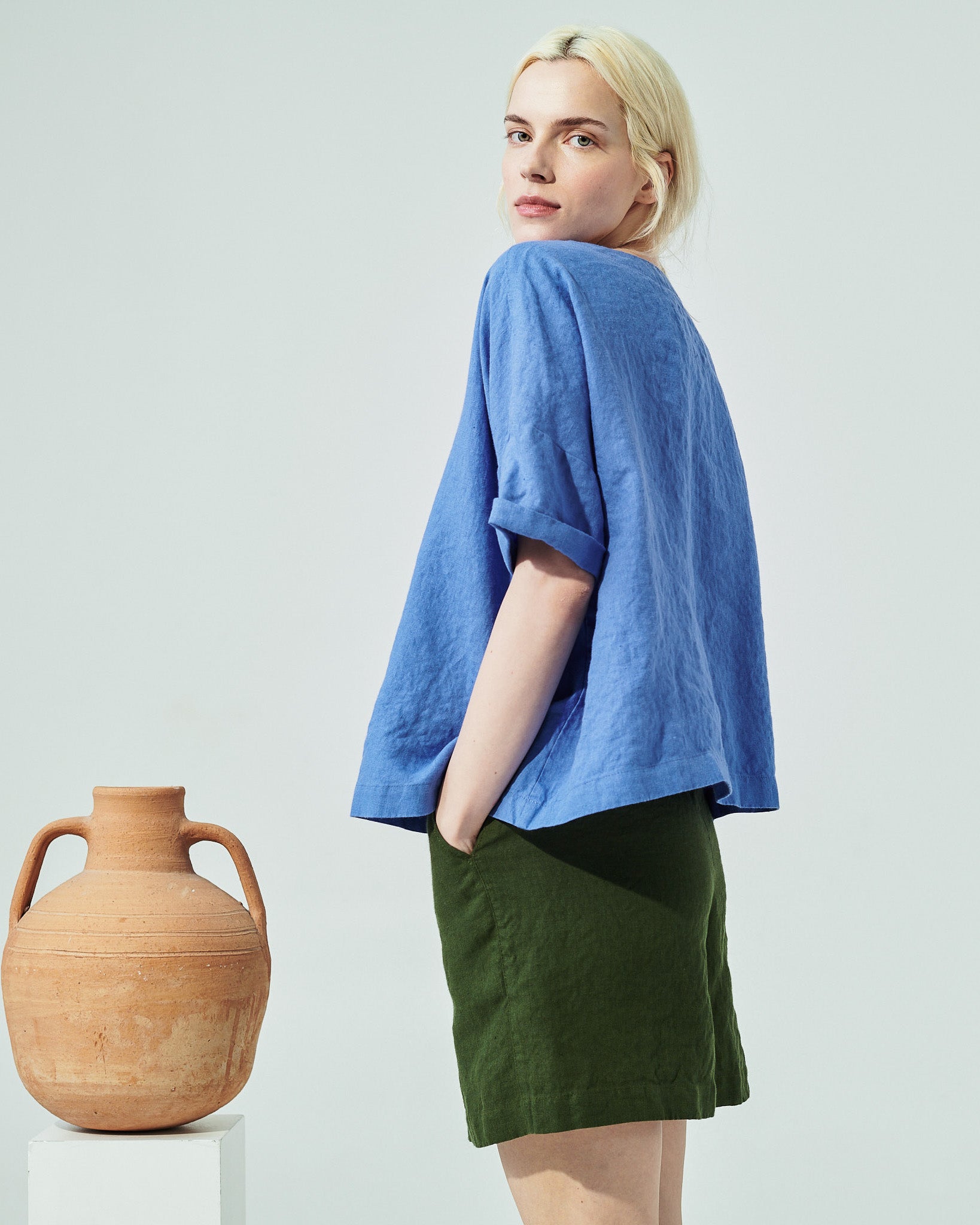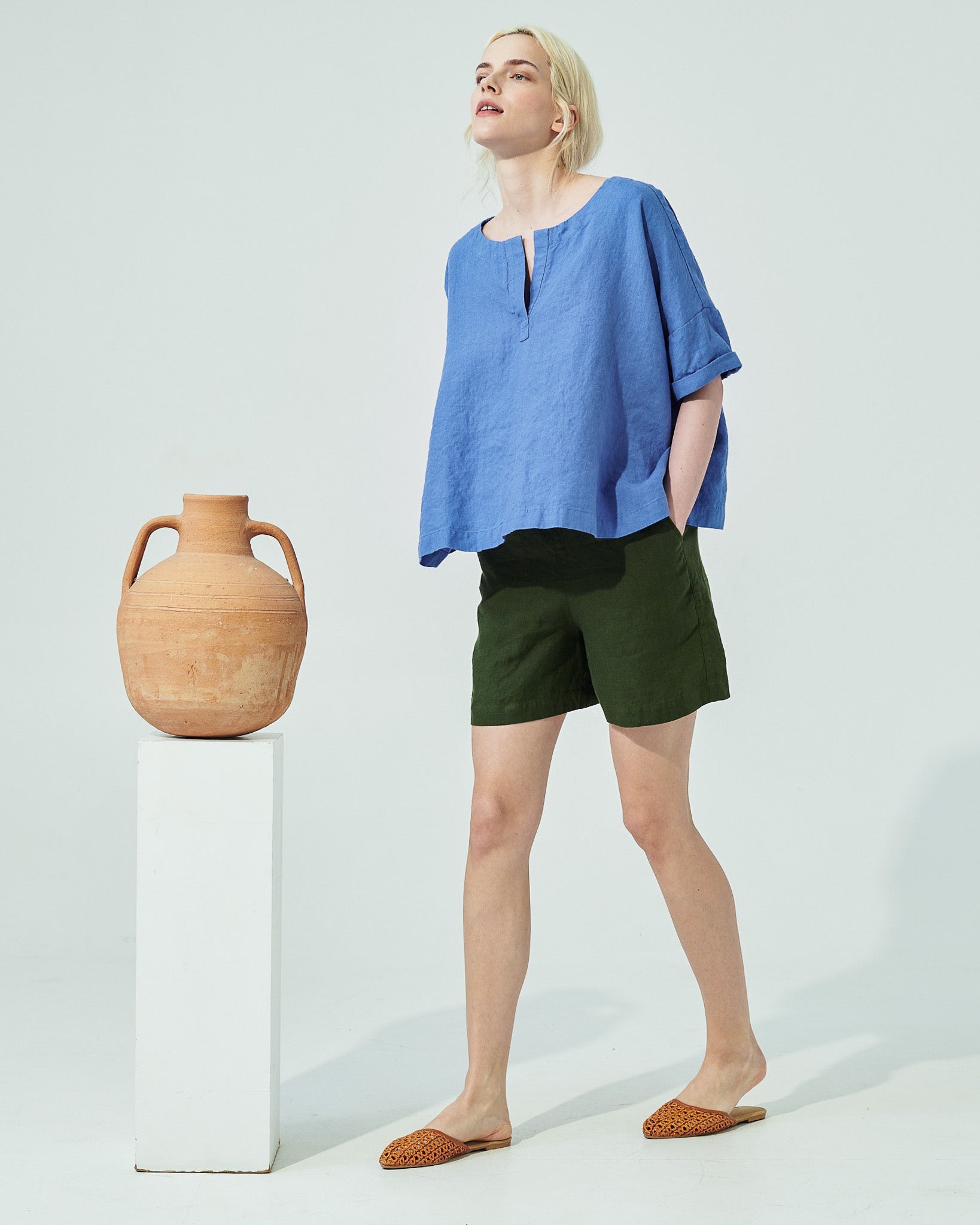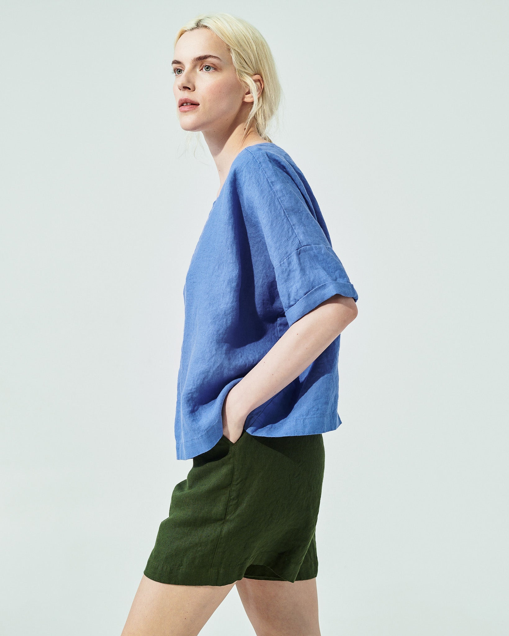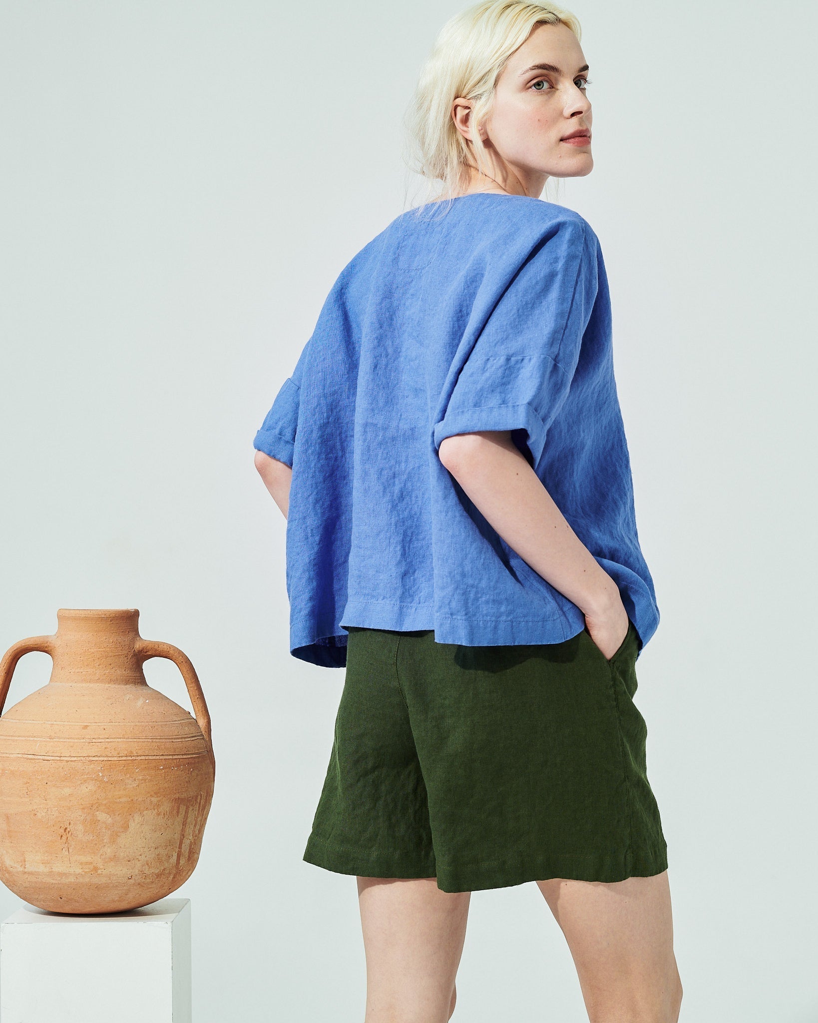 • Oversized boxy-fit linen top for maximum comfort during hot days. Airy cut prevents the fabric from clinging to your body, allowing for better airflow.