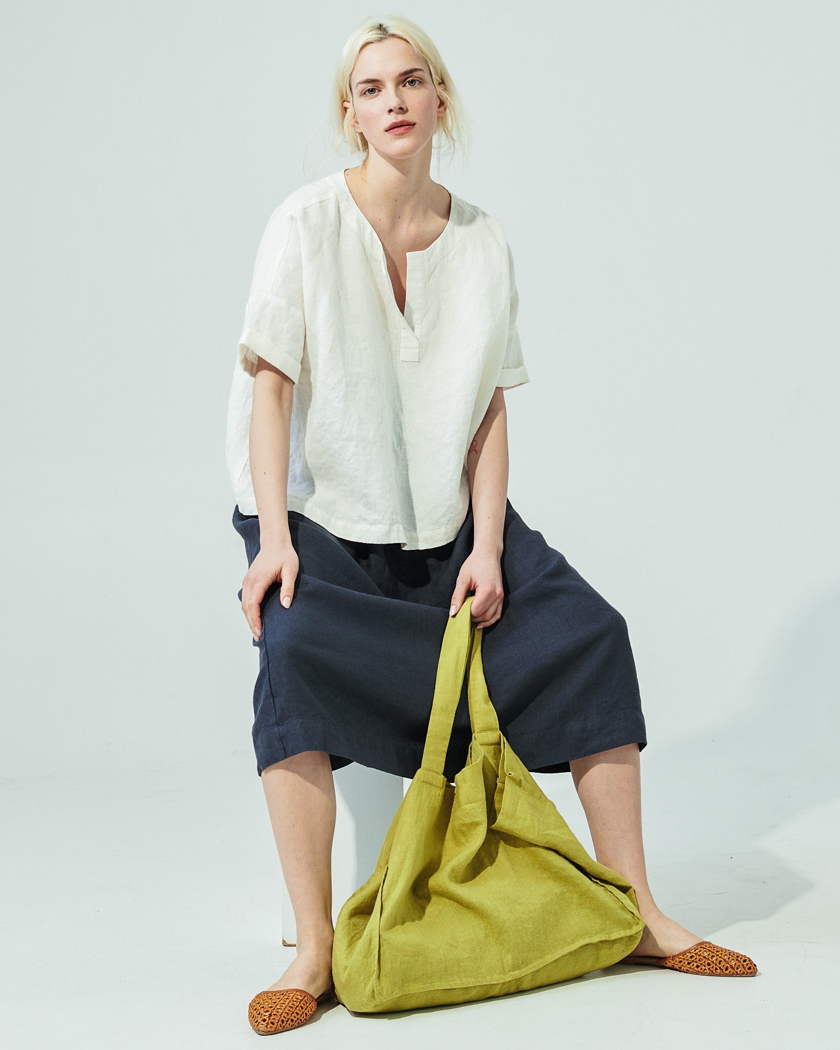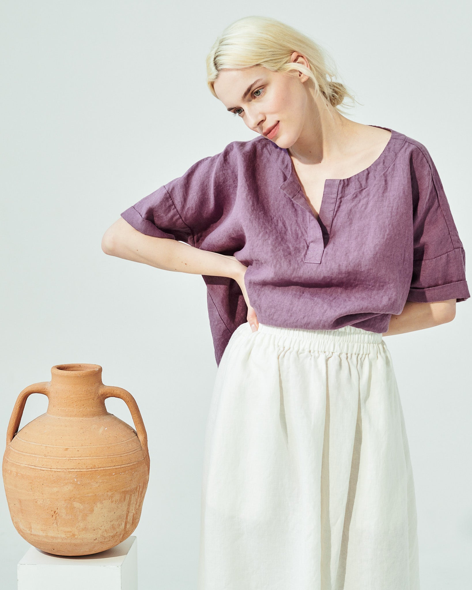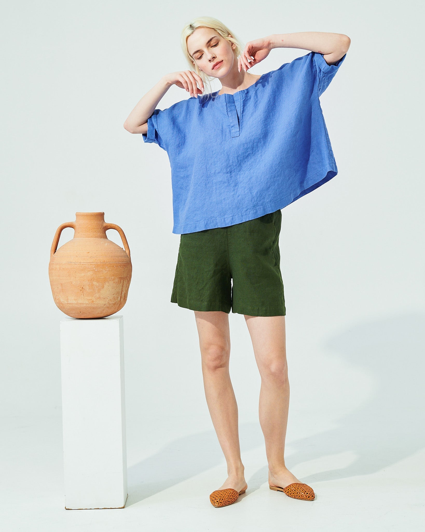 • Oversized boxy-fit linen top for maximum comfort during hot days. Airy cut prevents the fabric from clinging to your body, allowing for better airflow.