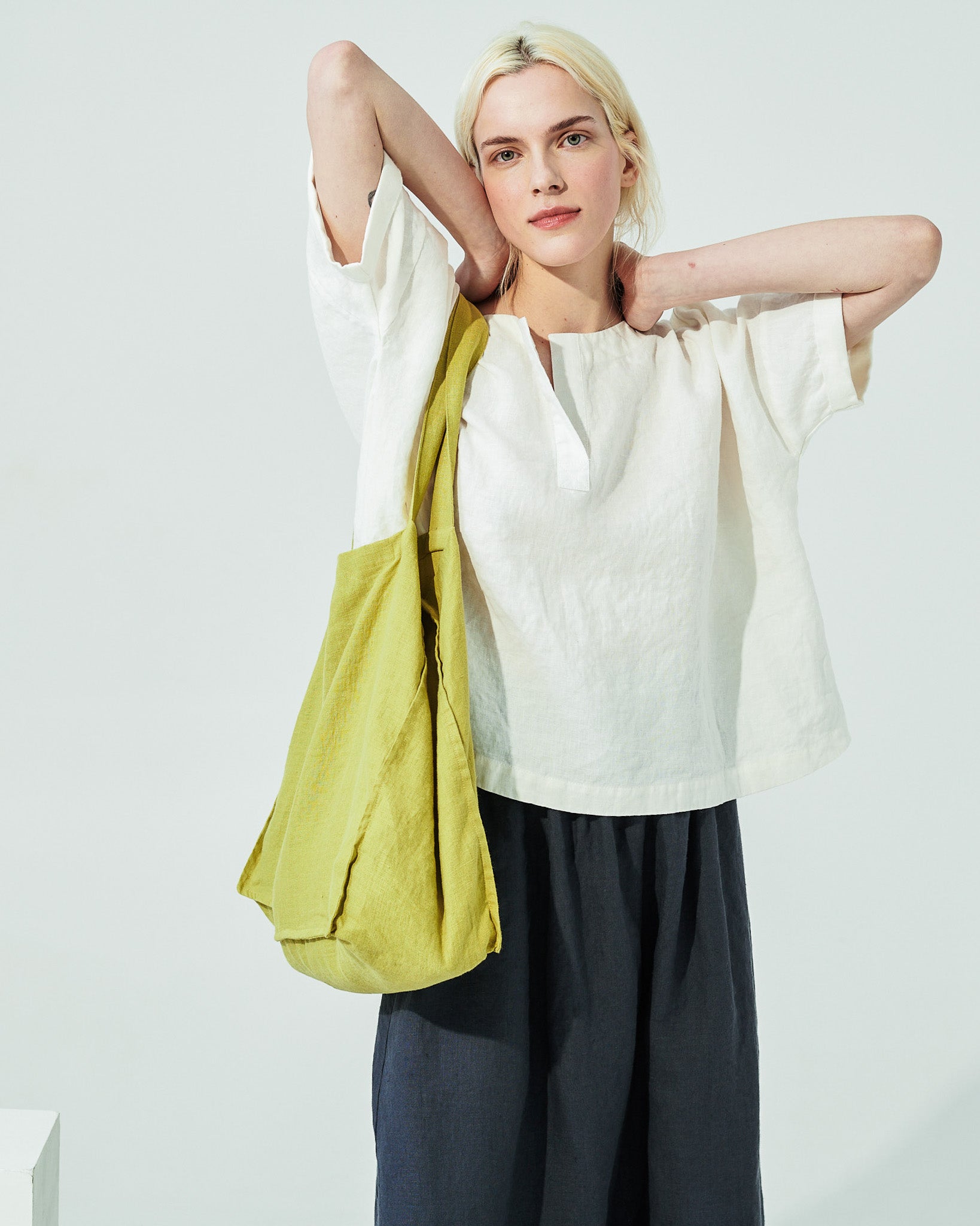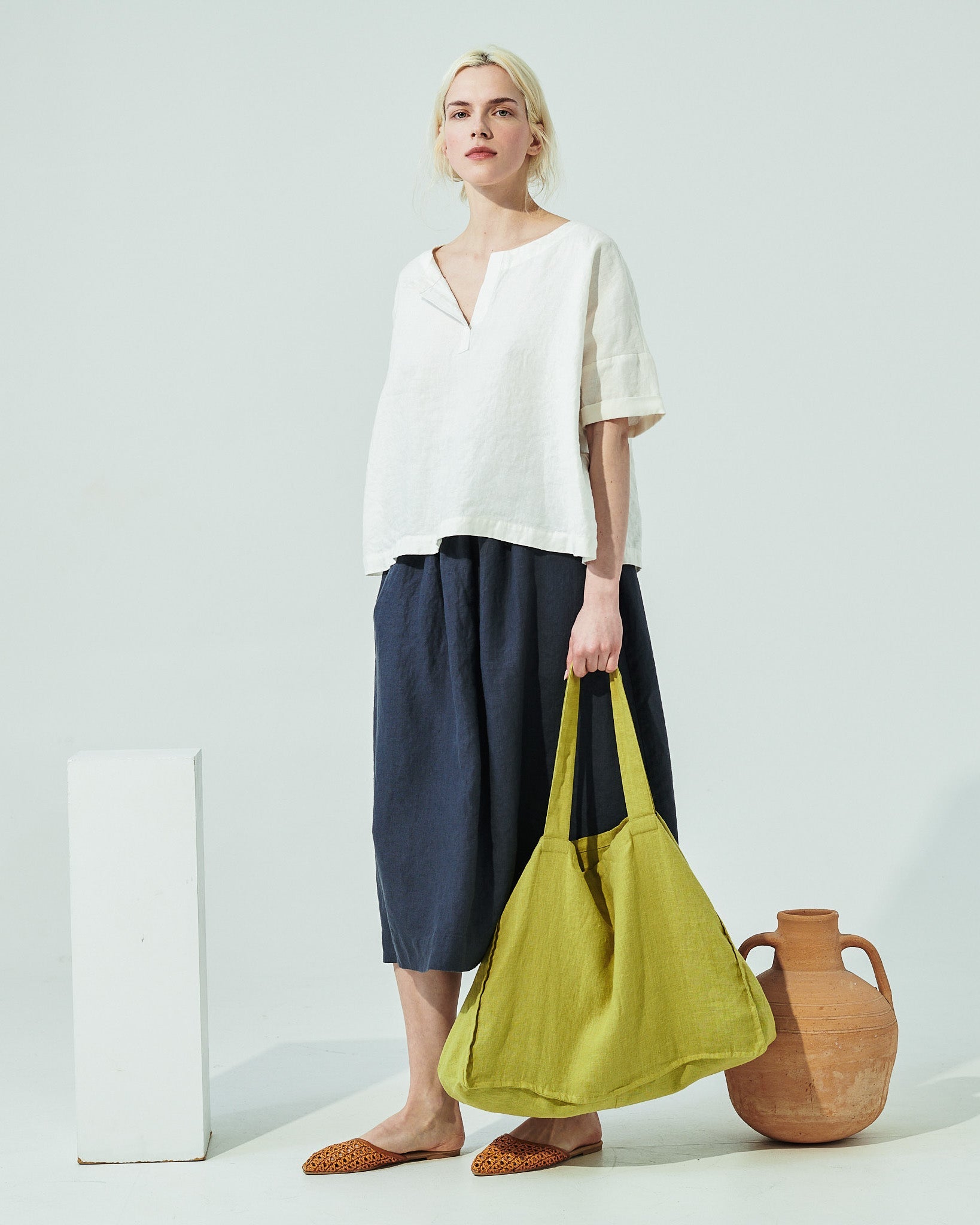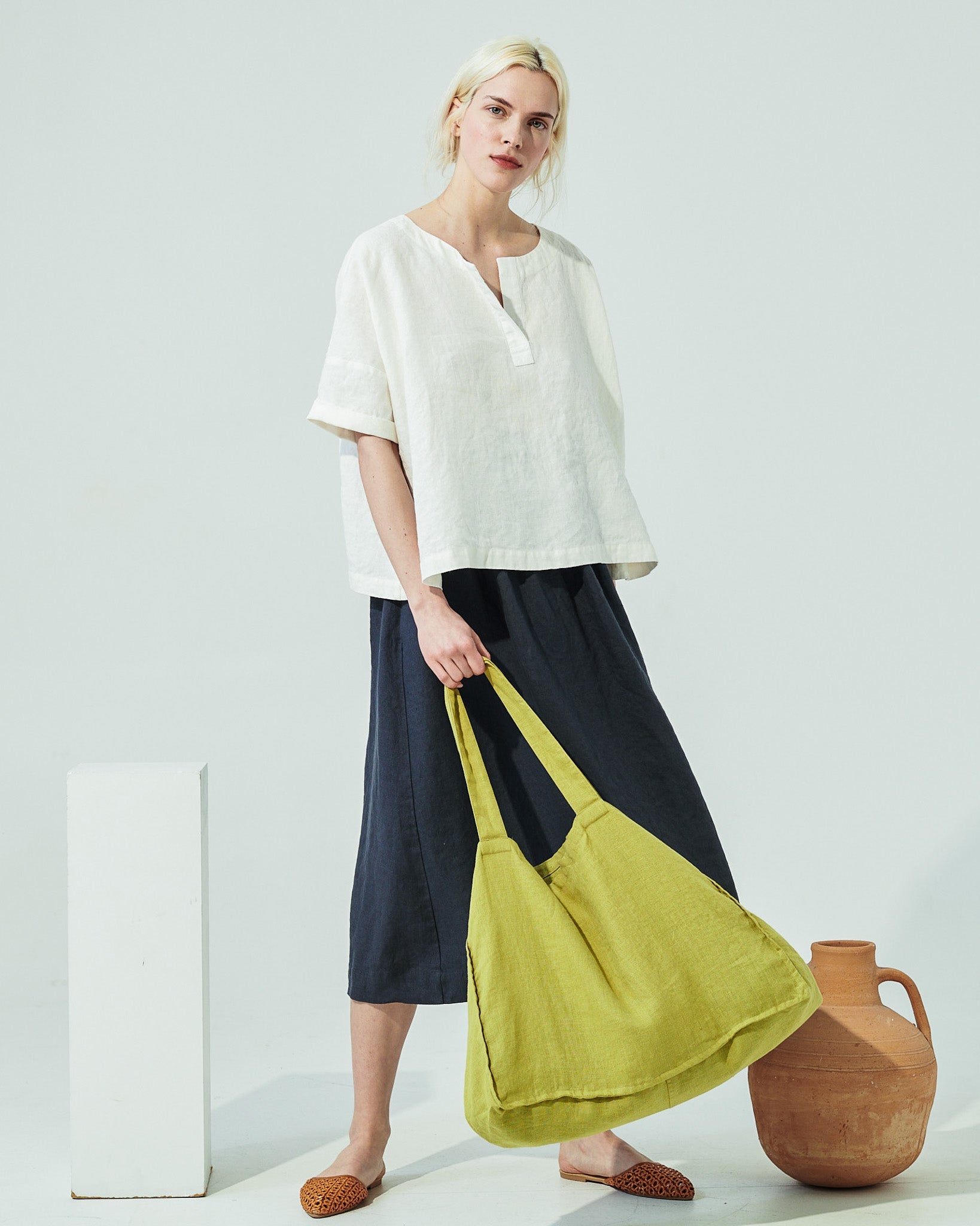 • Oversized boxy-fit linen top for maximum comfort during hot days. Airy cut prevents the fabric from clinging to your body, allowing for better airflow.