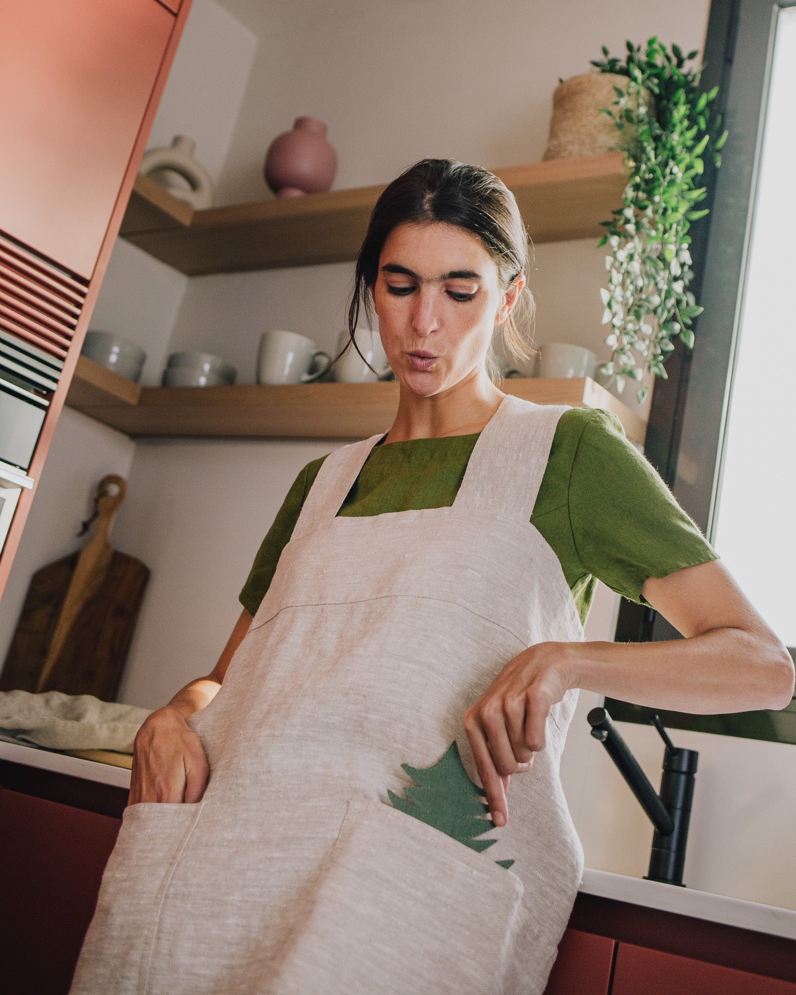 • Our aprons are truly crafted with bakers in mind—they’re made from durable, breathable linen fabric that can handle everything from mixing dough to decorating cakes. With roomy front pockets, there’s a handy spot for essentials like measuring spoons, recipe cards, or a phone for those step-by-step instructions.