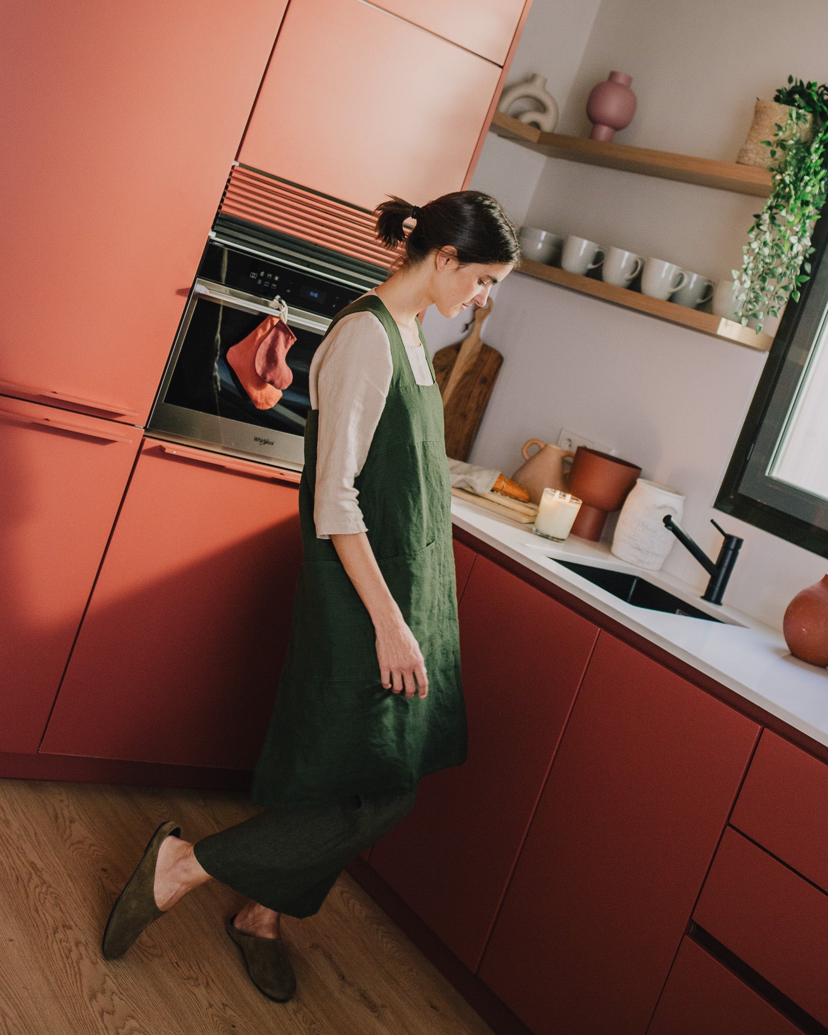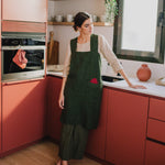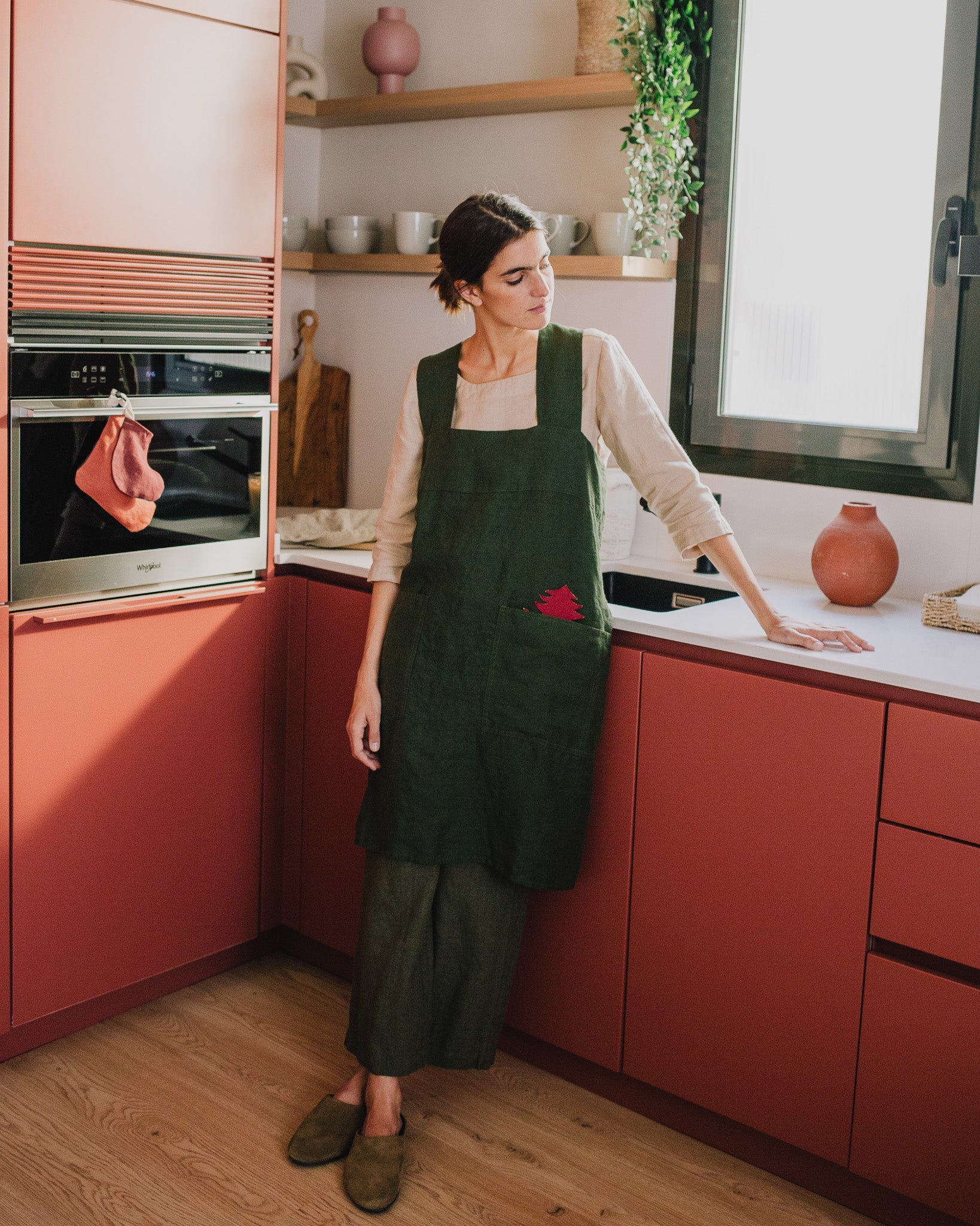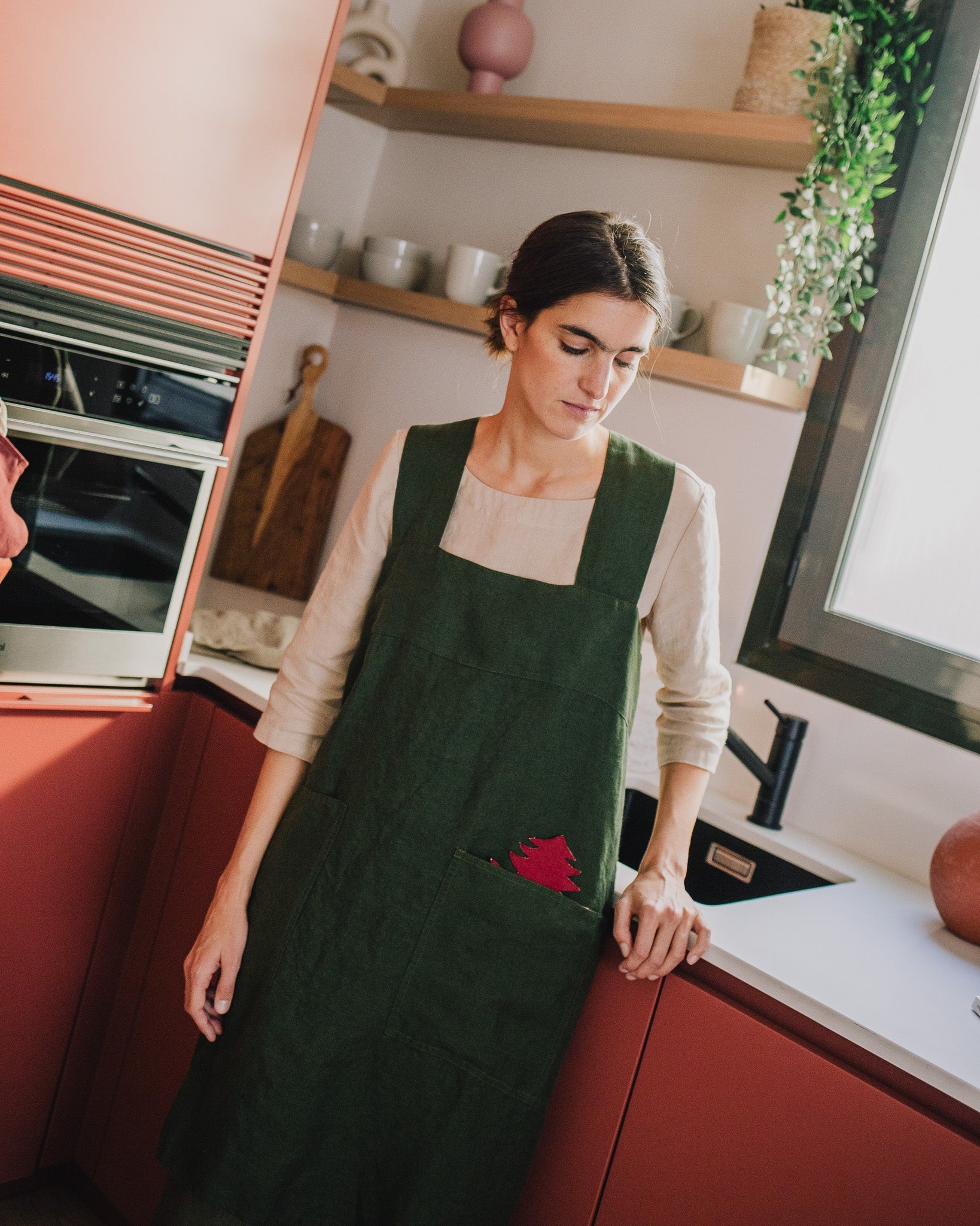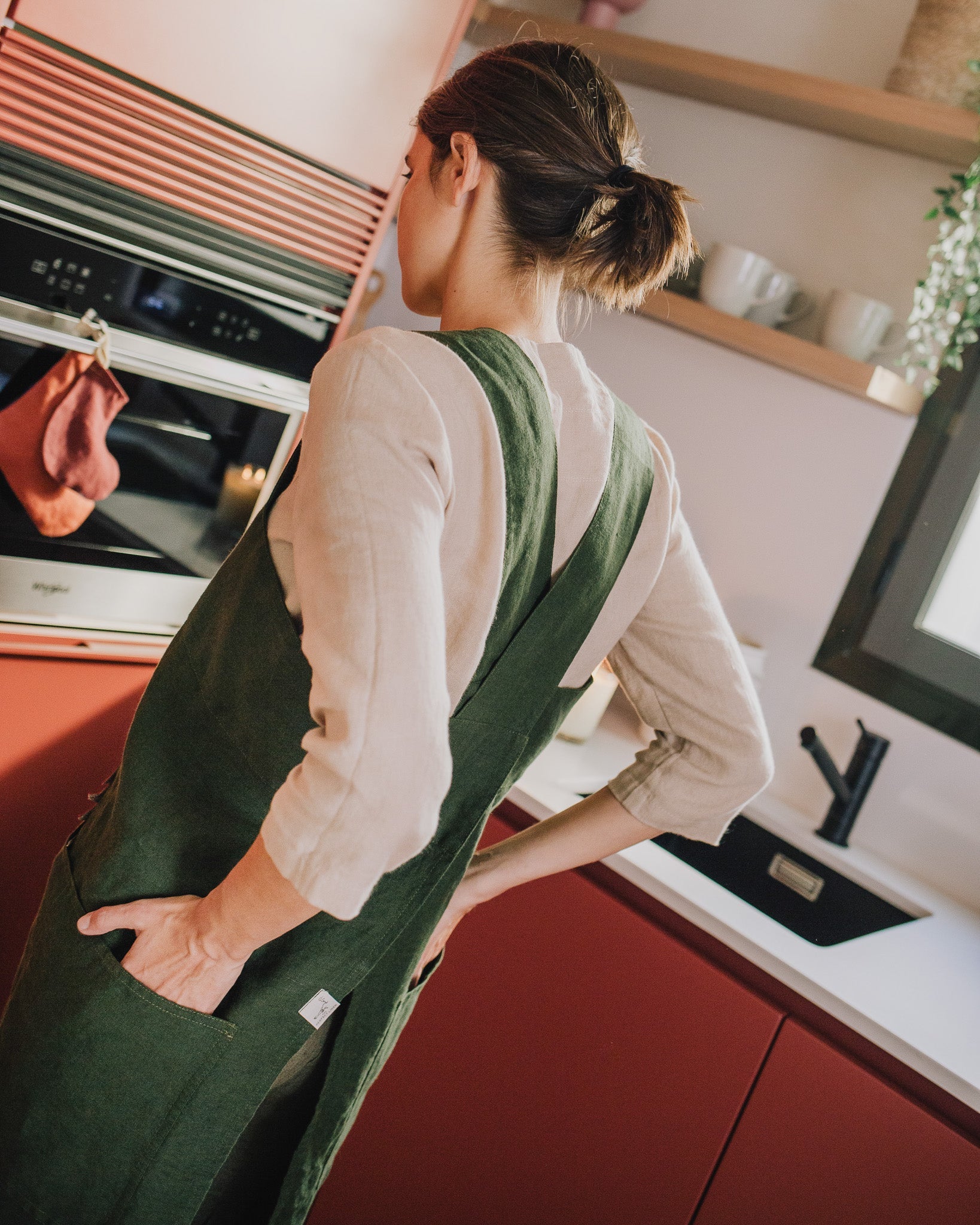 • Our aprons are truly crafted with bakers in mind—they’re made from durable, breathable linen fabric that can handle everything from mixing dough to decorating cakes. With roomy front pockets, there’s a handy spot for essentials like measuring spoons, recipe cards, or a phone for those step-by-step instructions.