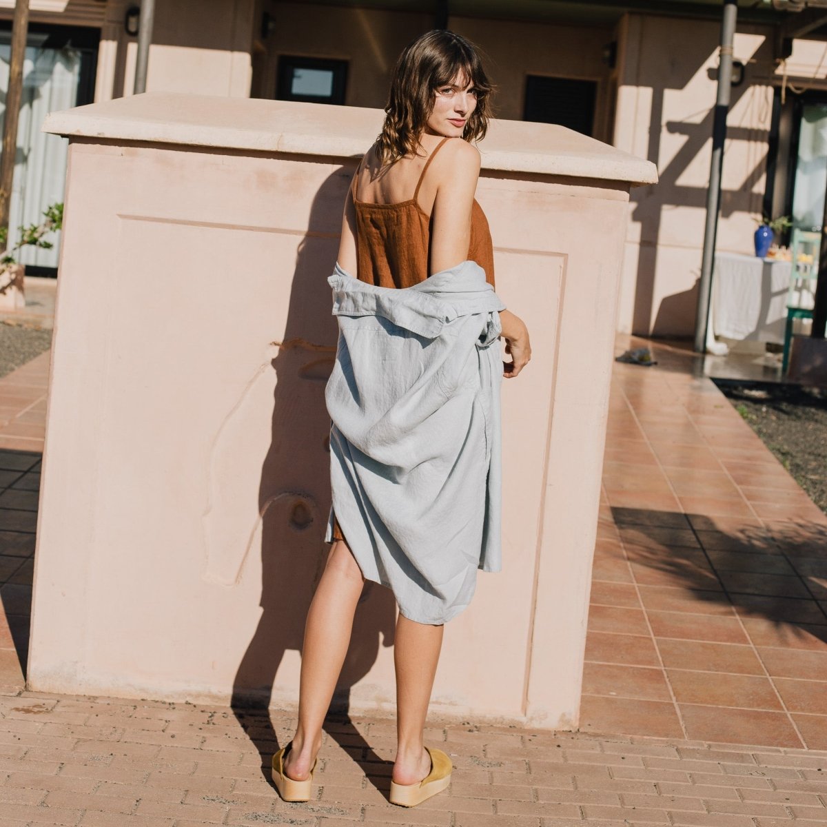 Linen, unlikely other fabrics, which are produced under intense chemical treatment, is a plant which grows without the need for many fertilizers or pesticides. This means that not only the fabric we put on our skin is free from extreme harmful substances, but also it does not damage our soil.