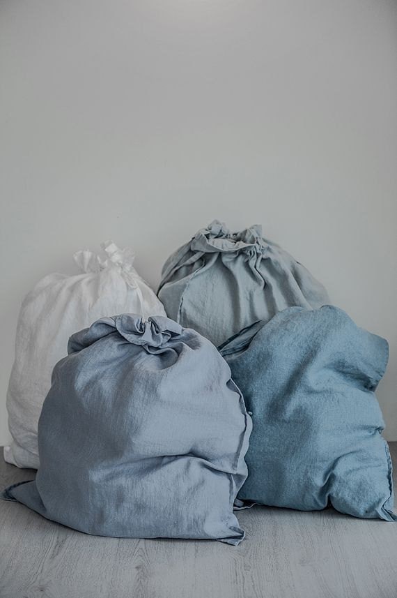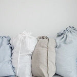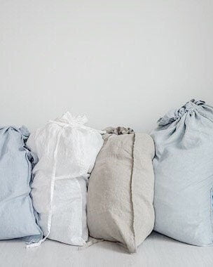 Washed, soft, large linen laundry bag with drawstring closure. Great for travel or home use.