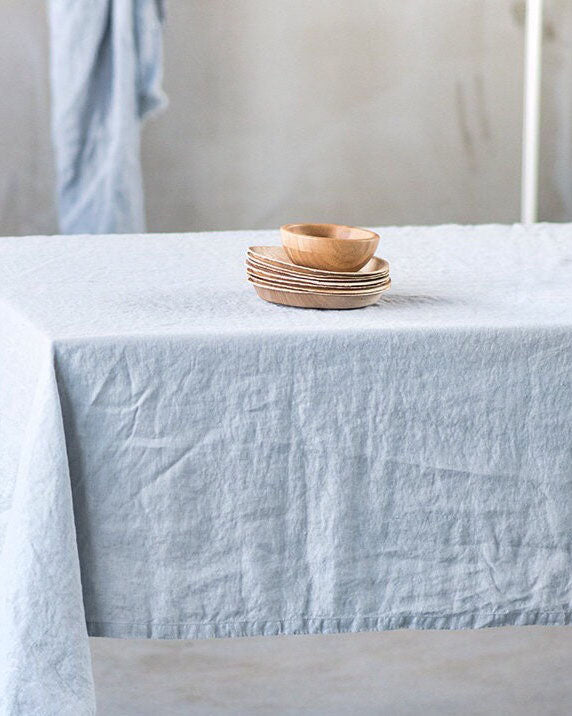 • Washed, soft linen tablecloth available in two lengths or custom-made to your specifications.