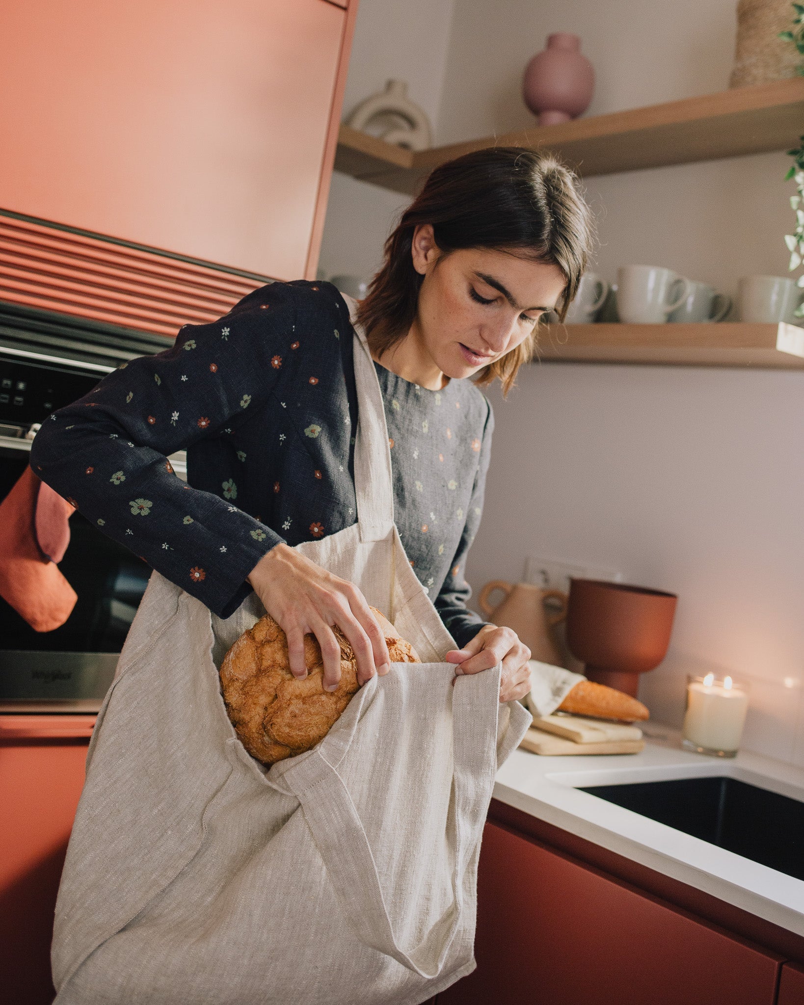 We keep our supply chain local to minimize our environmental footprint. Our linen fabric manufacturer is based within 80 km from our studio, as long as the entire operation of designing, cutting, sewing, labelling, packing and shipping is done in exclusively in our studio. It cuts out middlemen, significantly reduces transportation air miles and help us to monitor the entirely process closely.