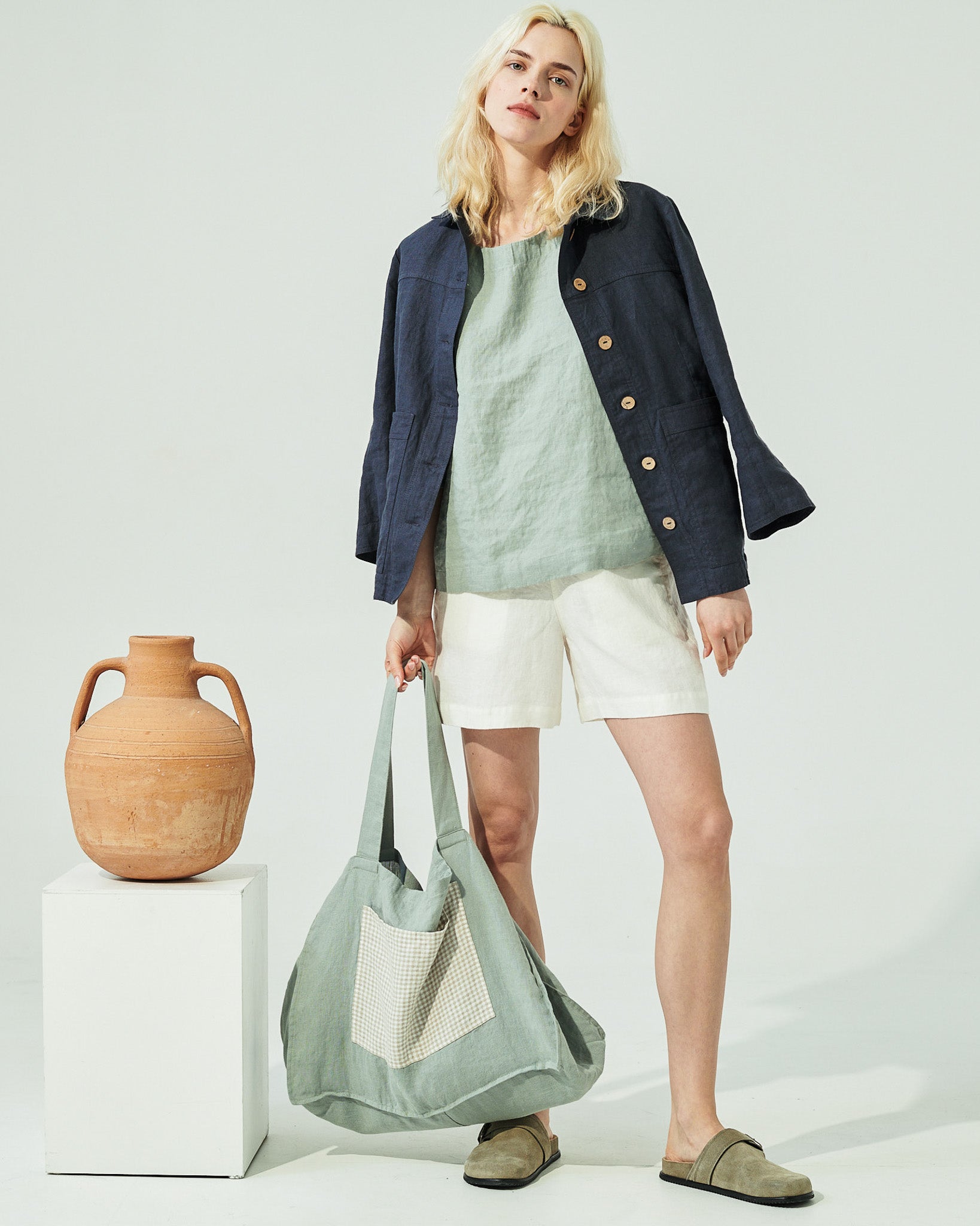 Linen Tote Bag in Succulent Green (SS24)