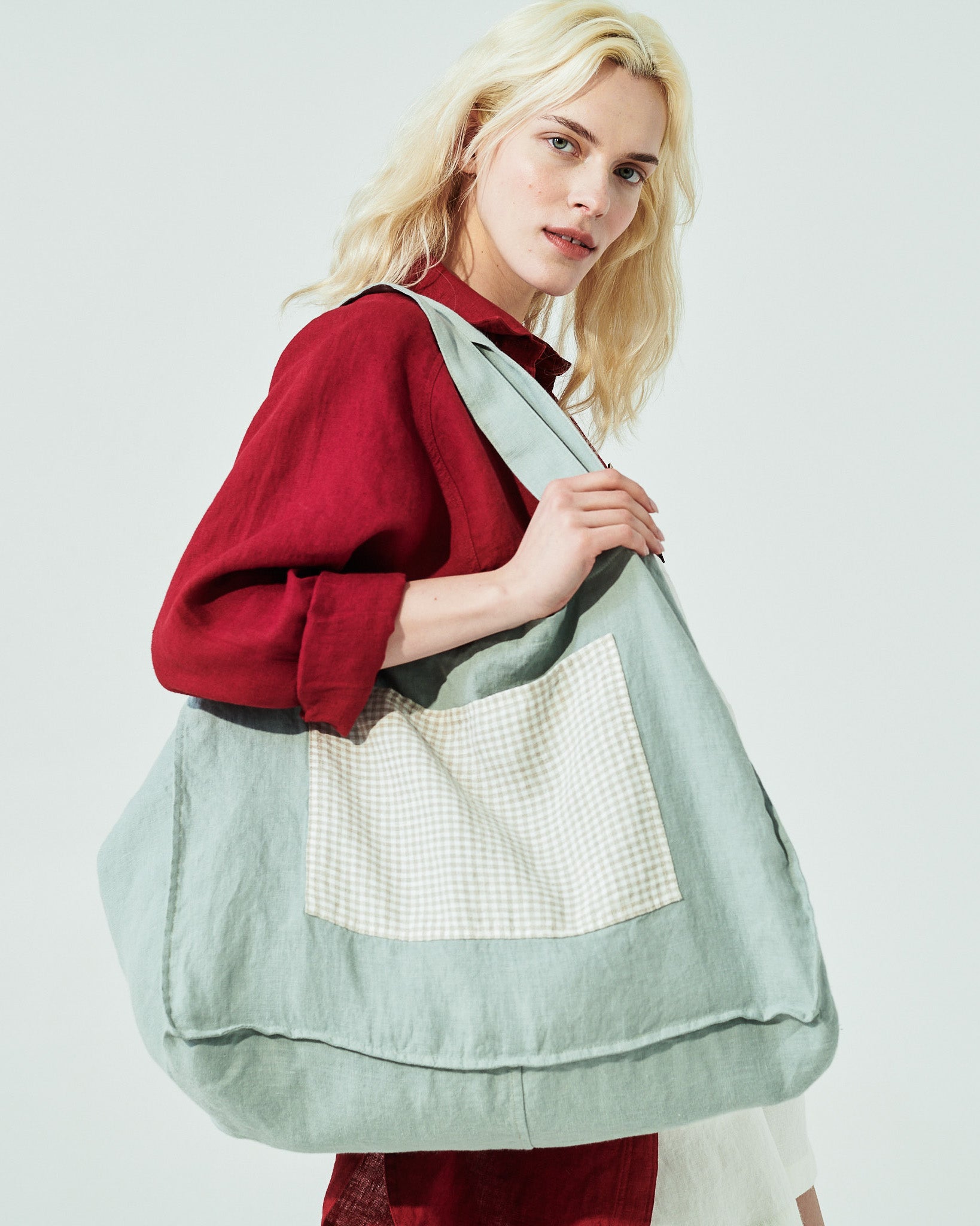• Simple and casual linen tote bag, great for shopping or used as a beach bag for large towels.