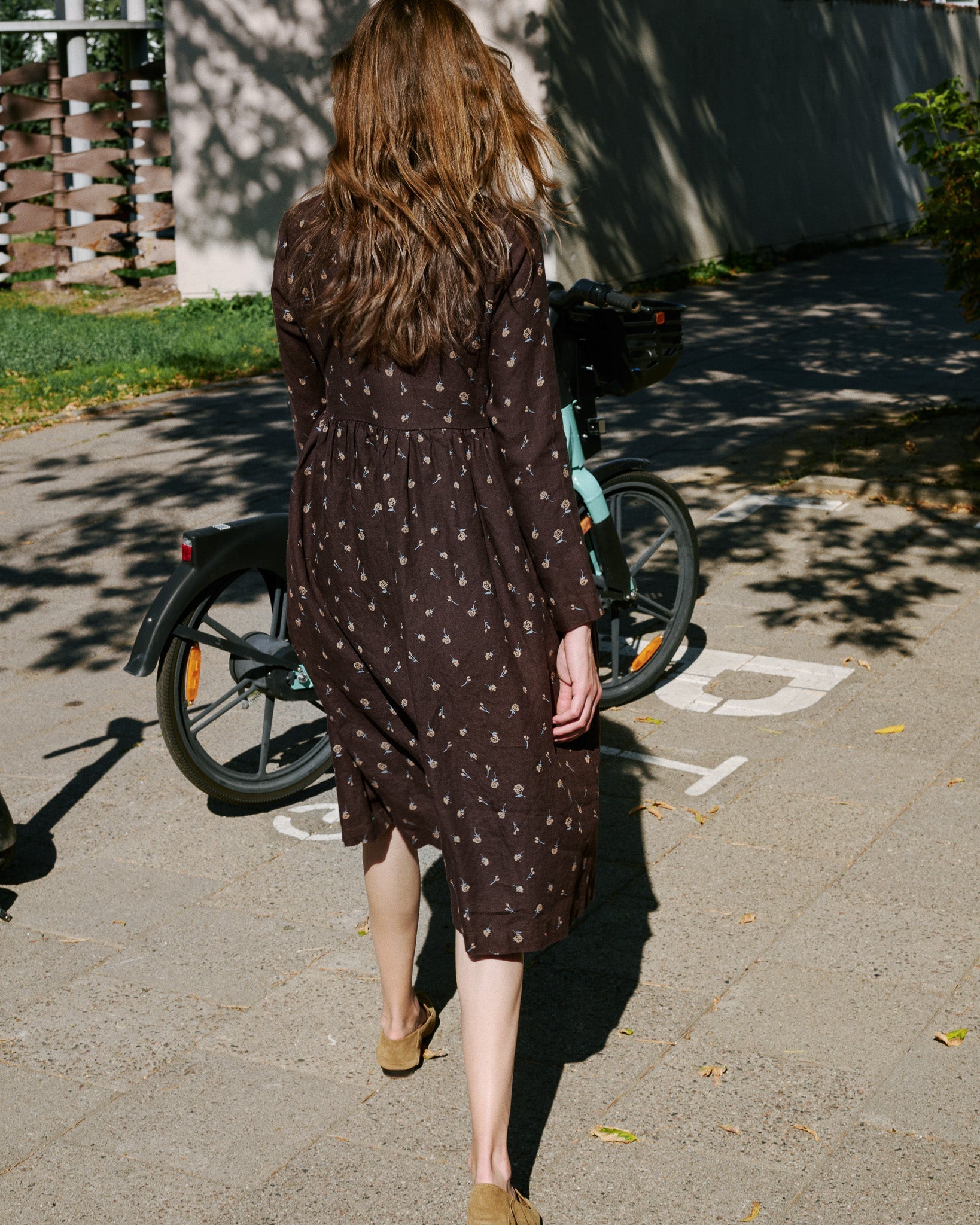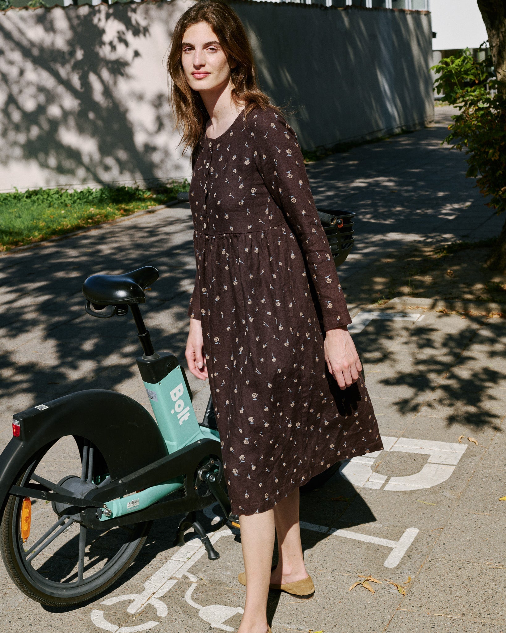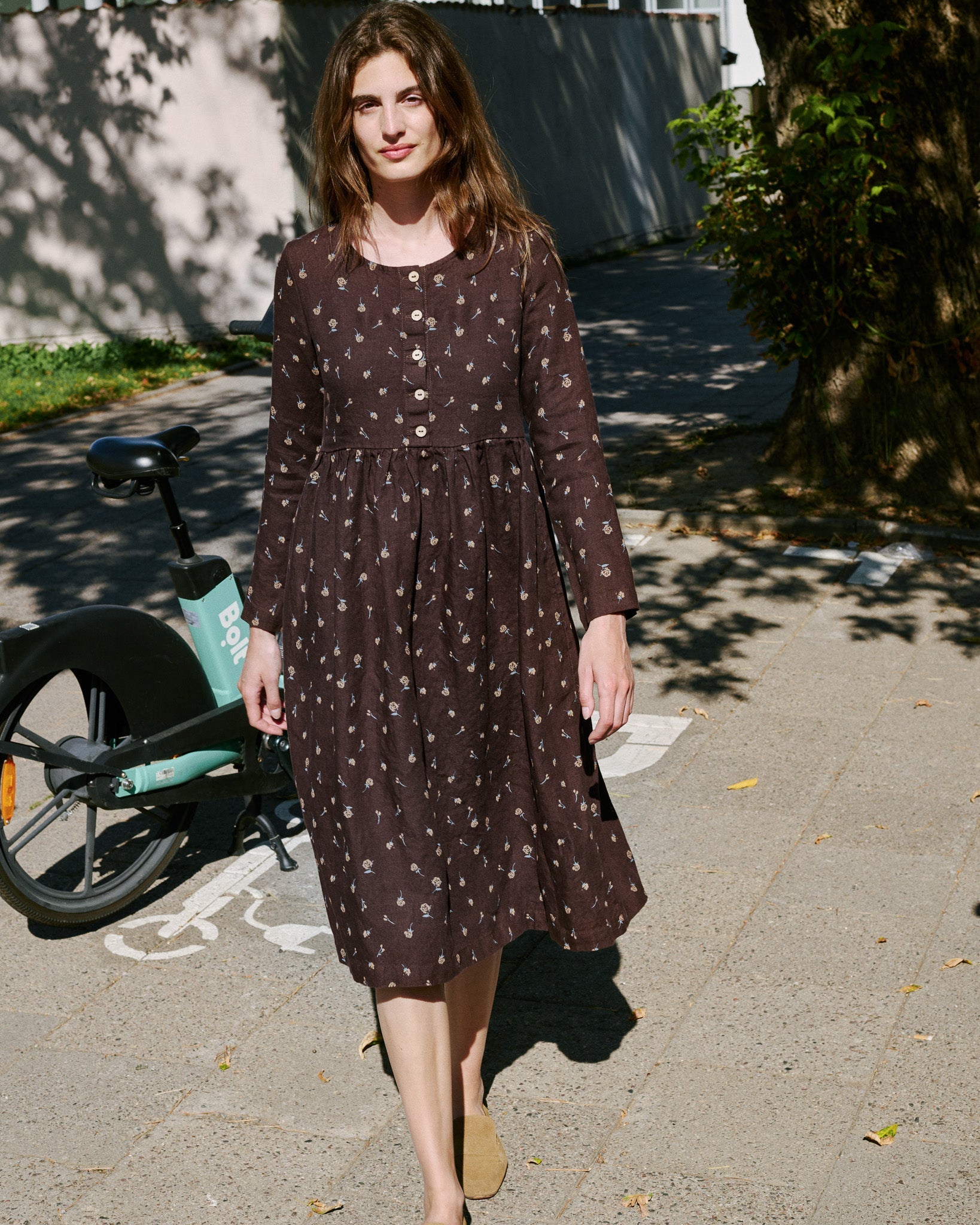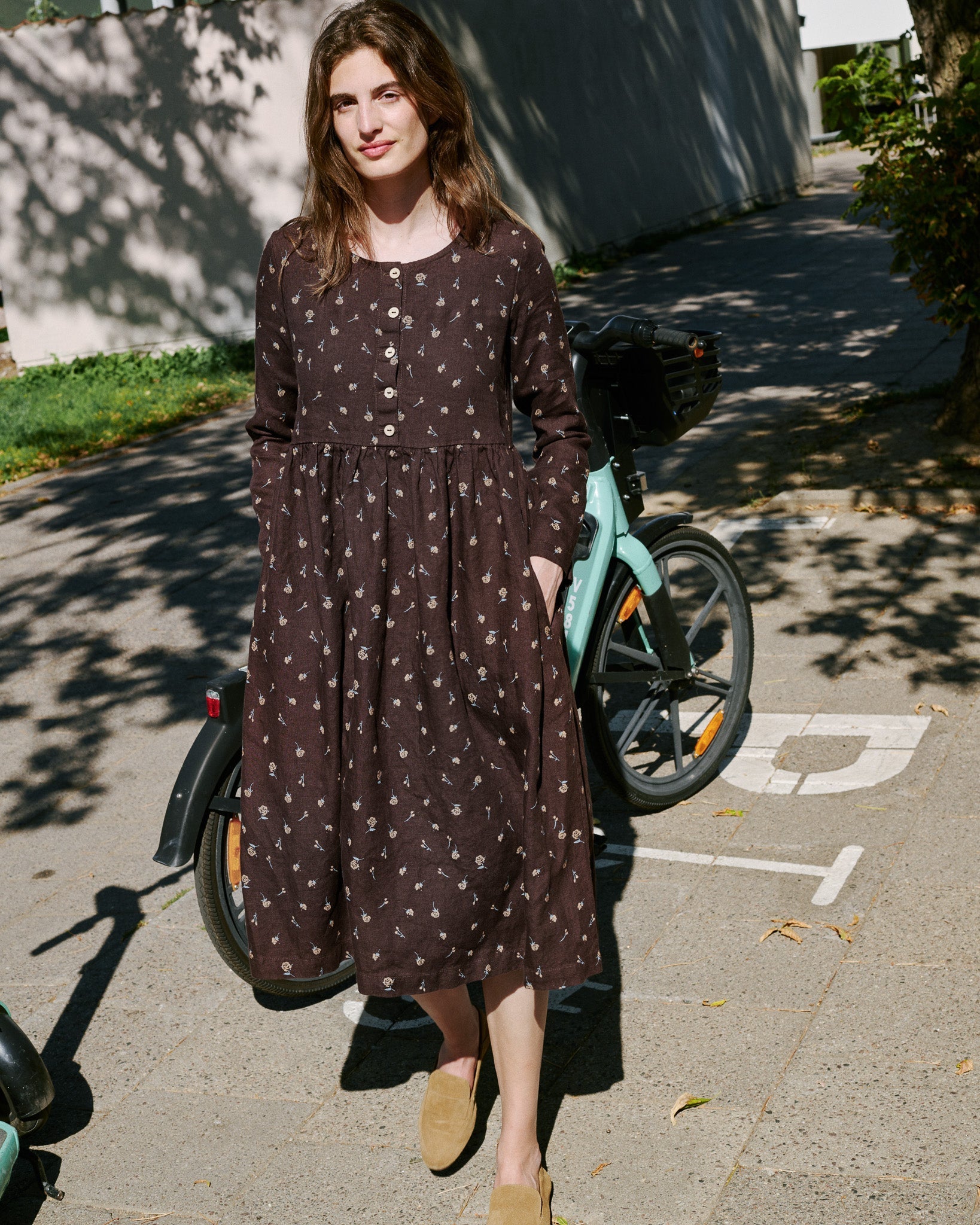 • Washed, soft, long-sleeve linen dress with a softly gathered skirt.