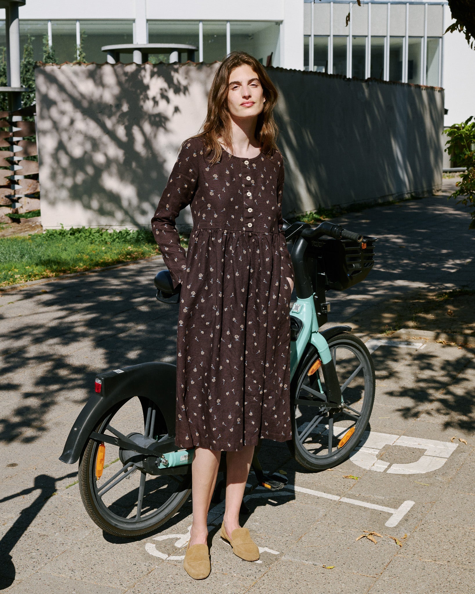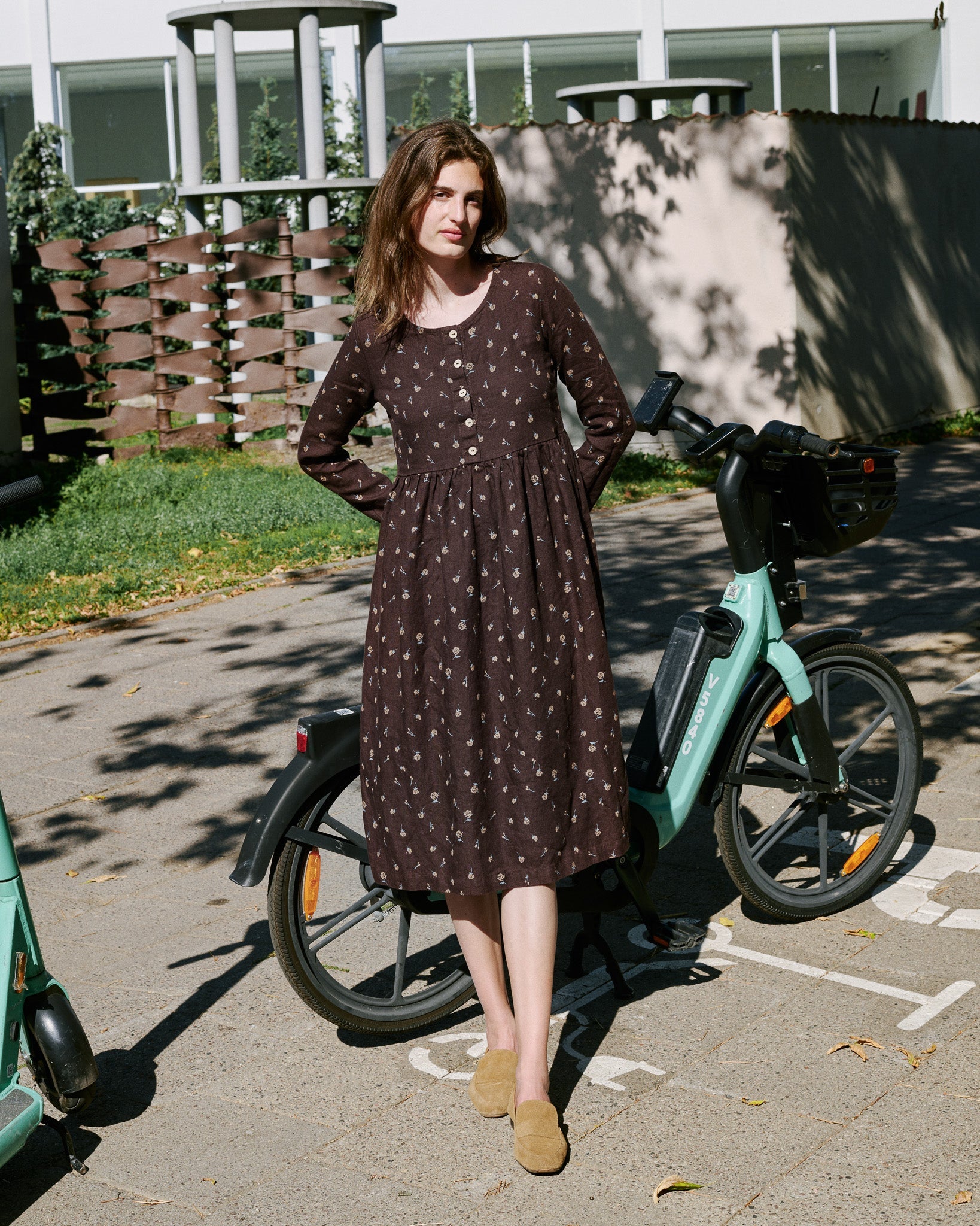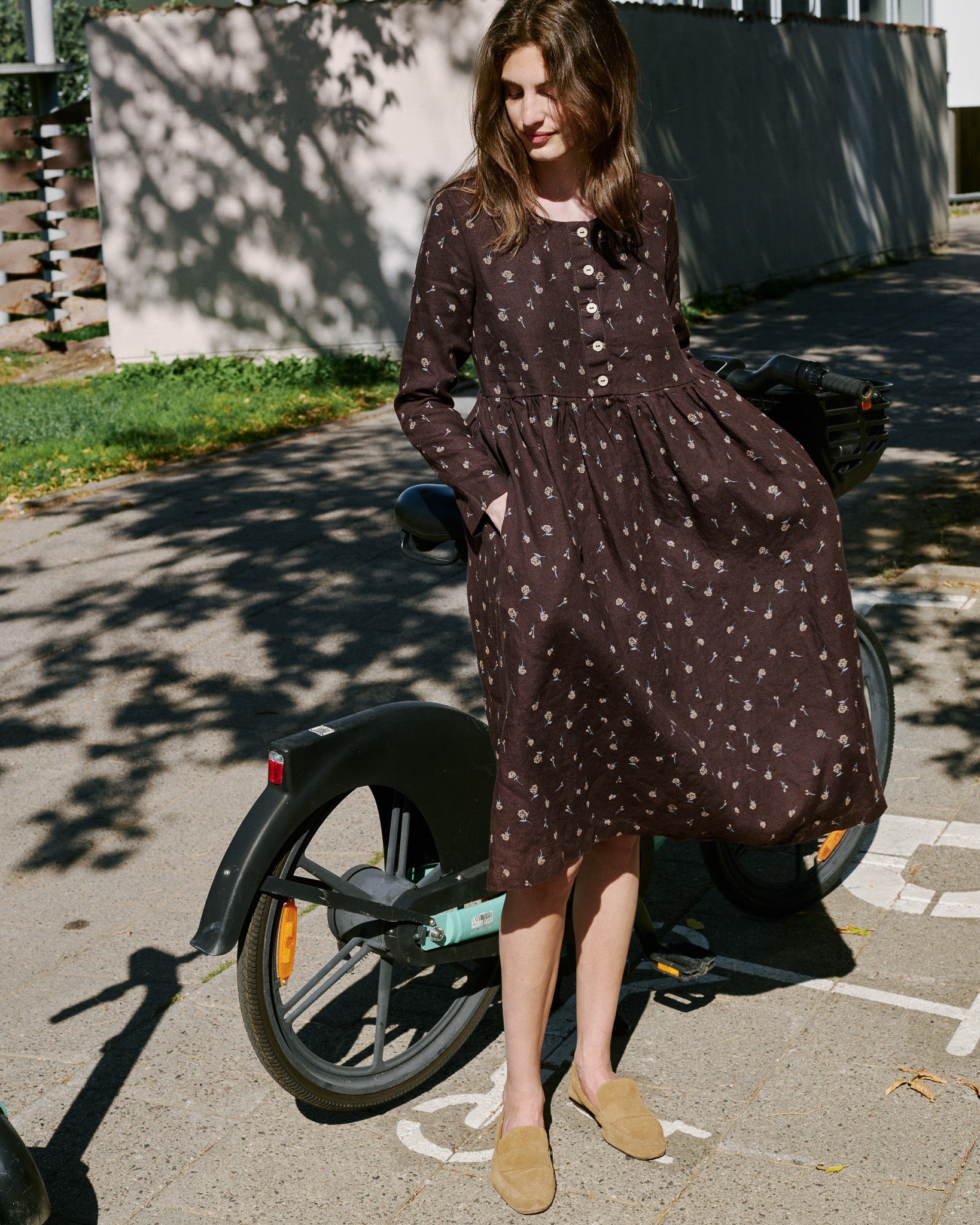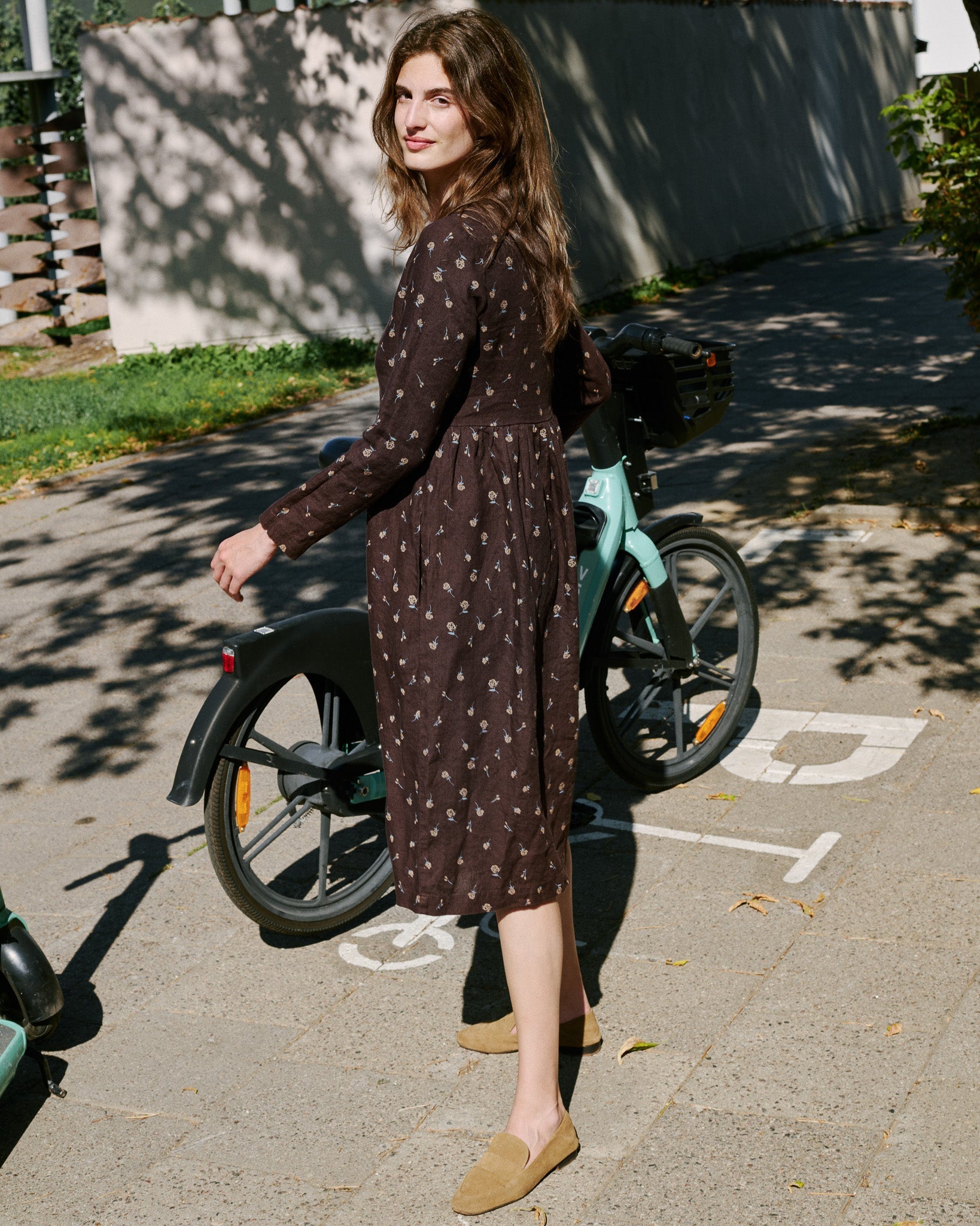 • Washed, soft, long-sleeve linen dress with a softly gathered skirt.