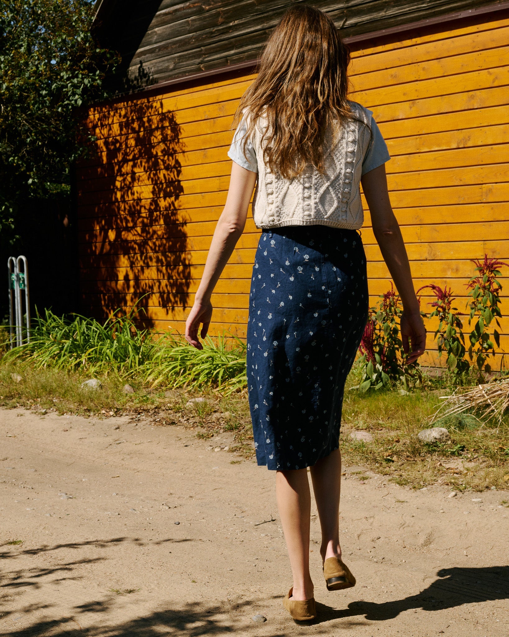 • Model is size S (179 cm/5.87 ft) and wears a skirt in midnight blue.