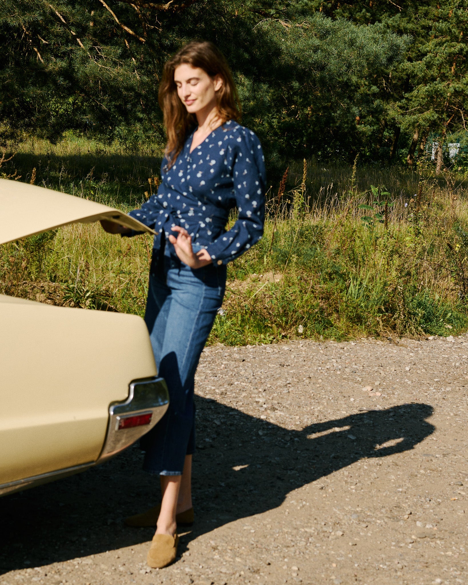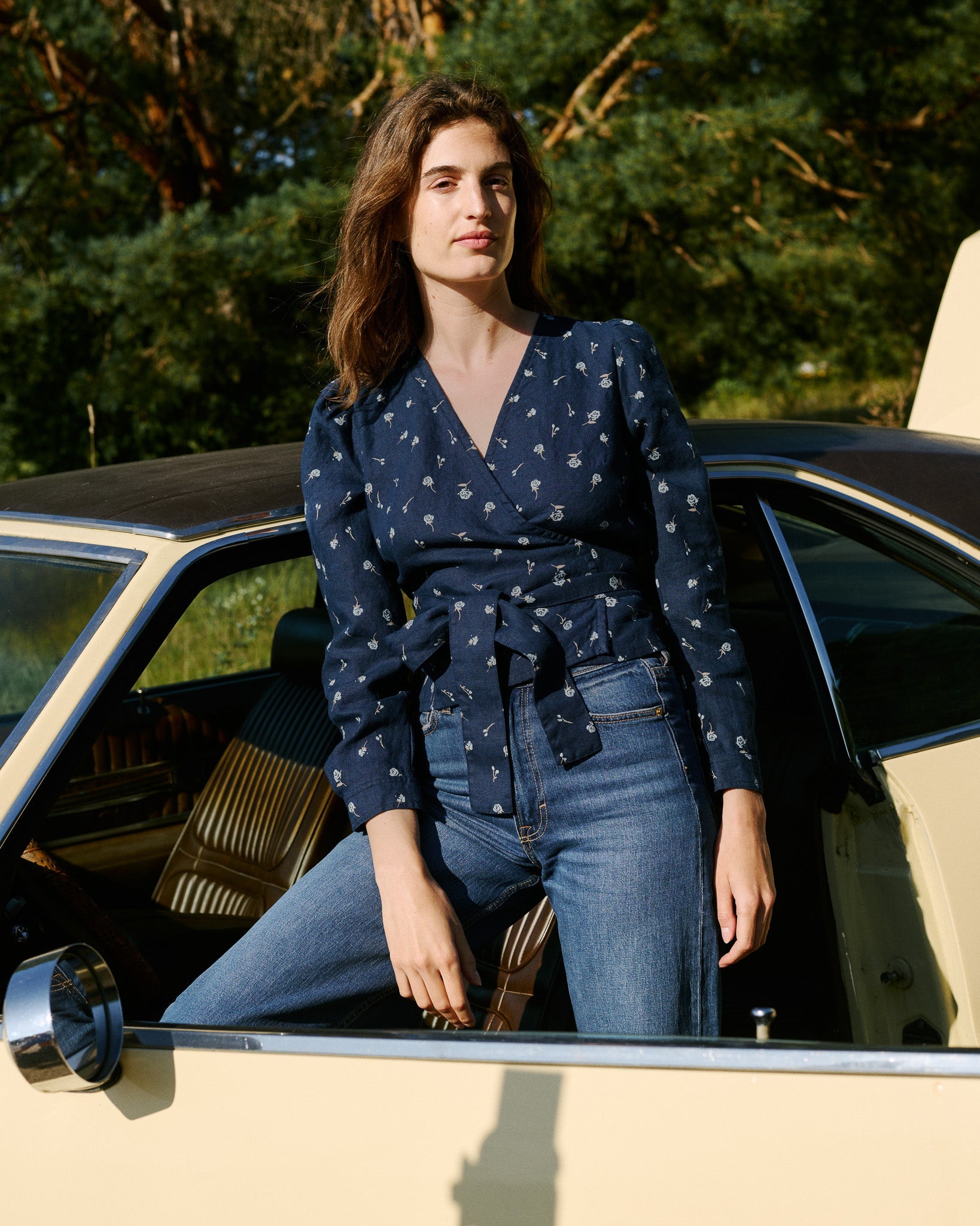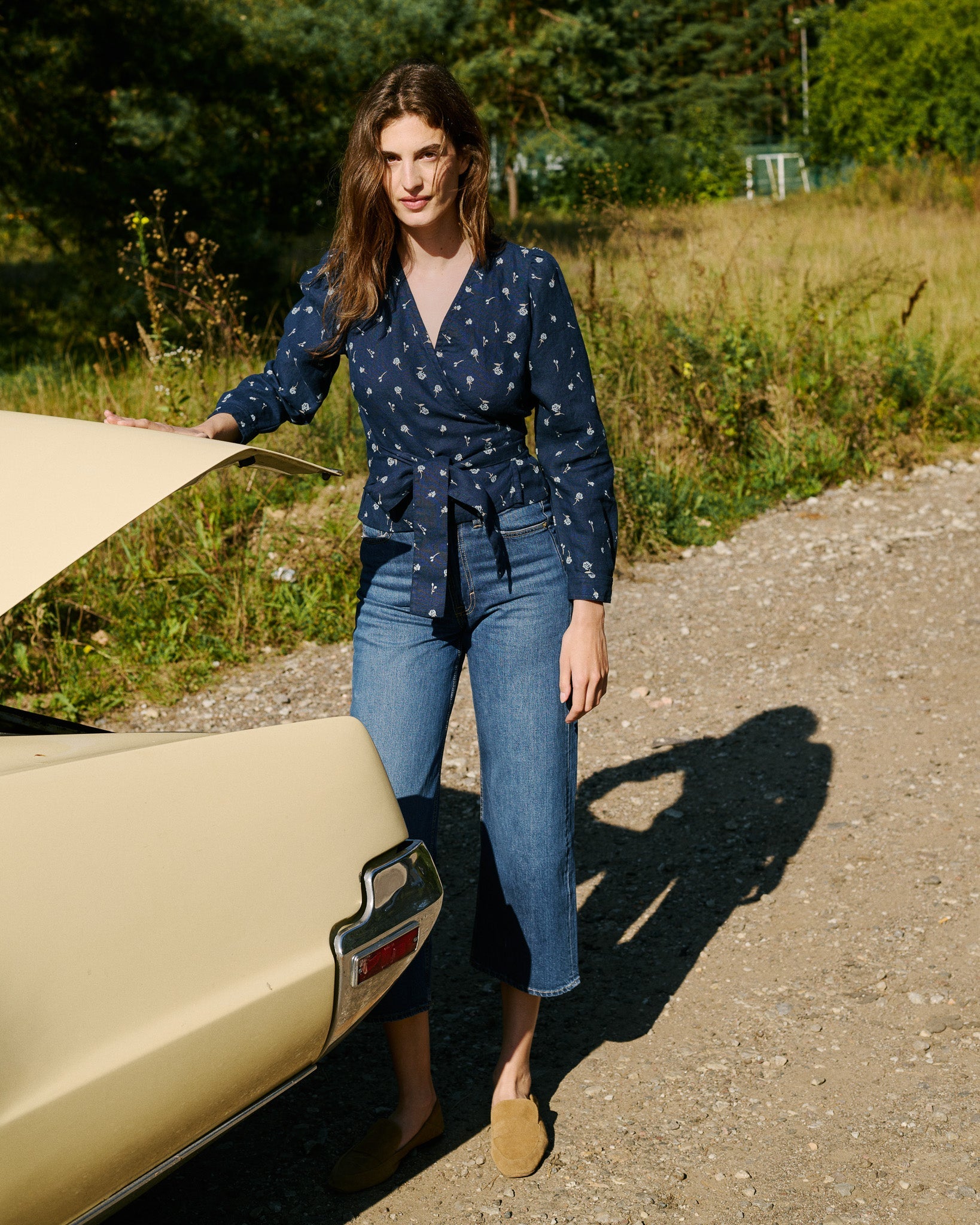 • Endlessly flattering cropped wrap top works on many shapes and sizes.