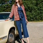 • Slightly cropped styling with gently puffed sleeves at the shoulders.