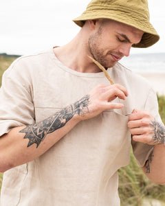 Linen, unlikely other fabrics, which are produced under intense chemical treatment, is a plant which grows without the need for many fertilizers or pesticides. This means that not only the fabric we put on our skin is free from extreme harmful substances, but also it does not damage our soil.