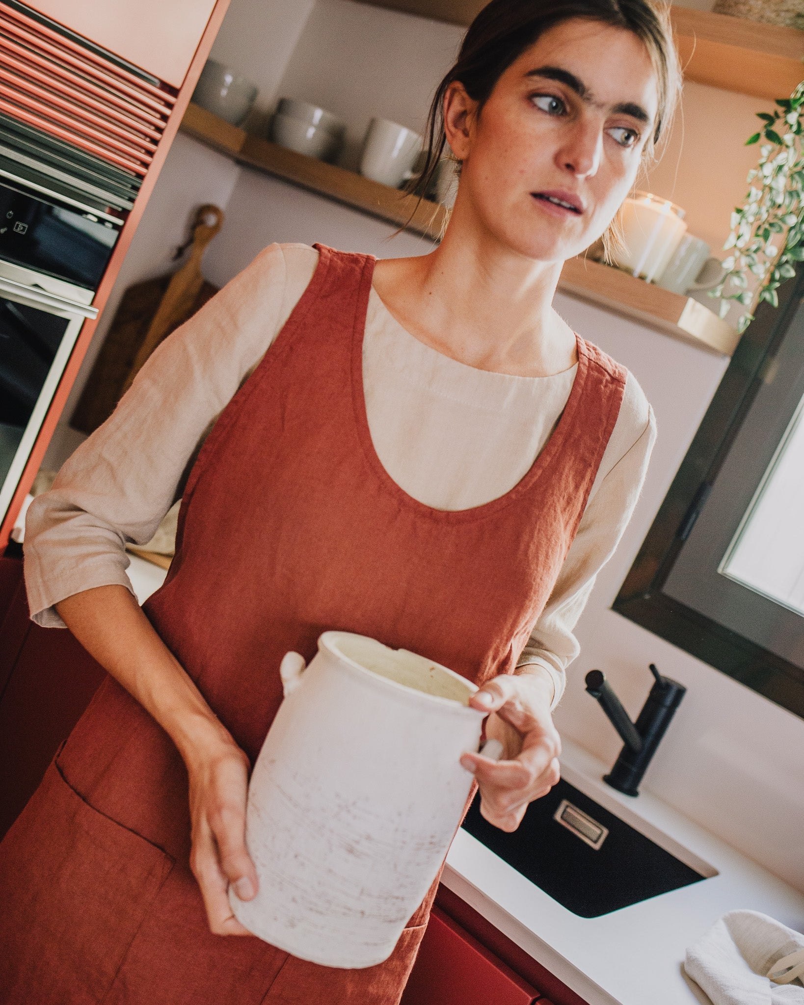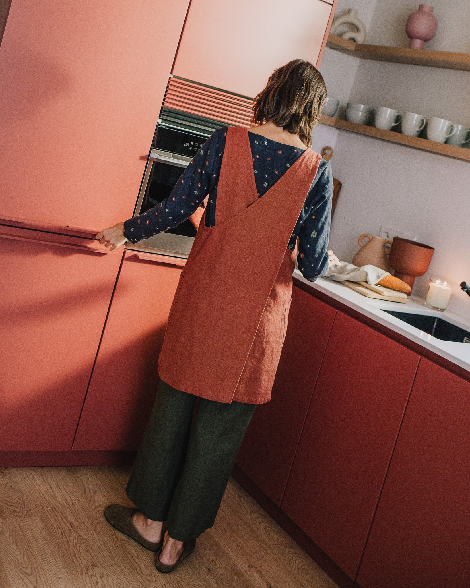 • Our aprons are truly crafted with bakers in mind—they’re made from durable, breathable linen fabric that can handle everything from mixing dough to decorating cakes. With roomy front pockets, there’s a handy spot for essentials like measuring spoons, recipe cards, or a phone for those step-by-step instructions.