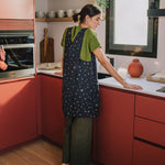 • The apron offers a cross-back style that’s easy to slip on—no ties, no fuss.