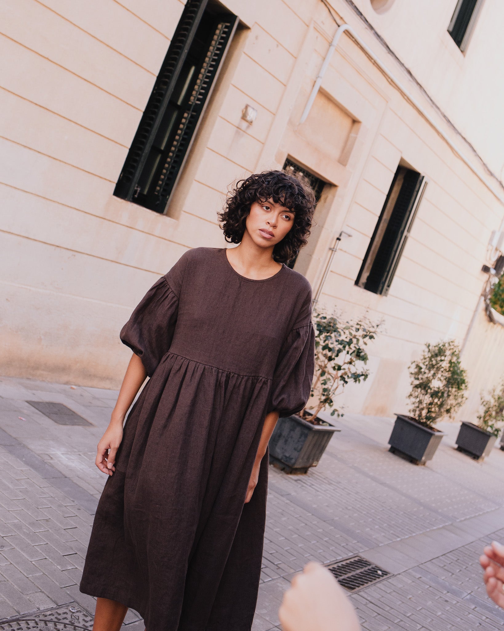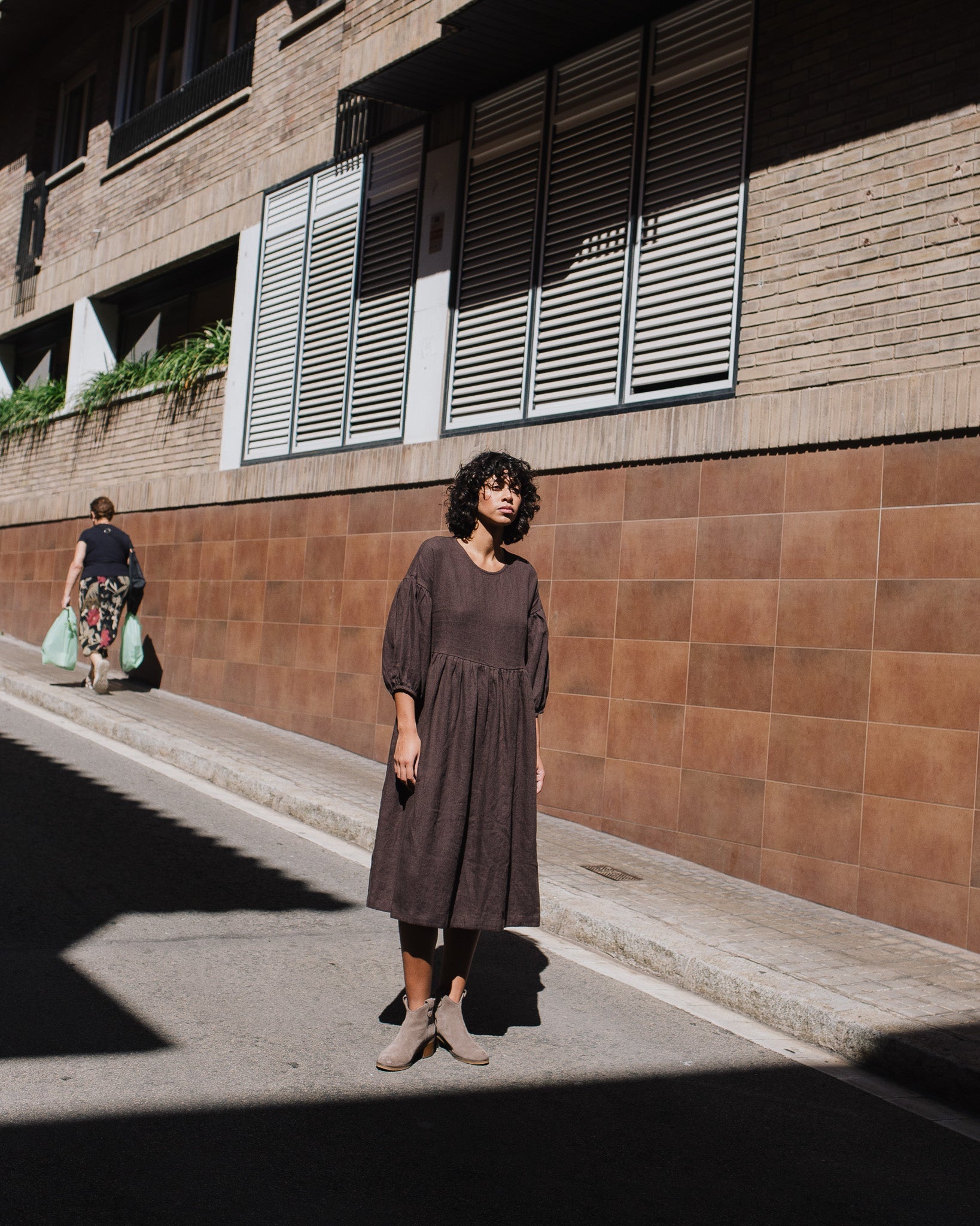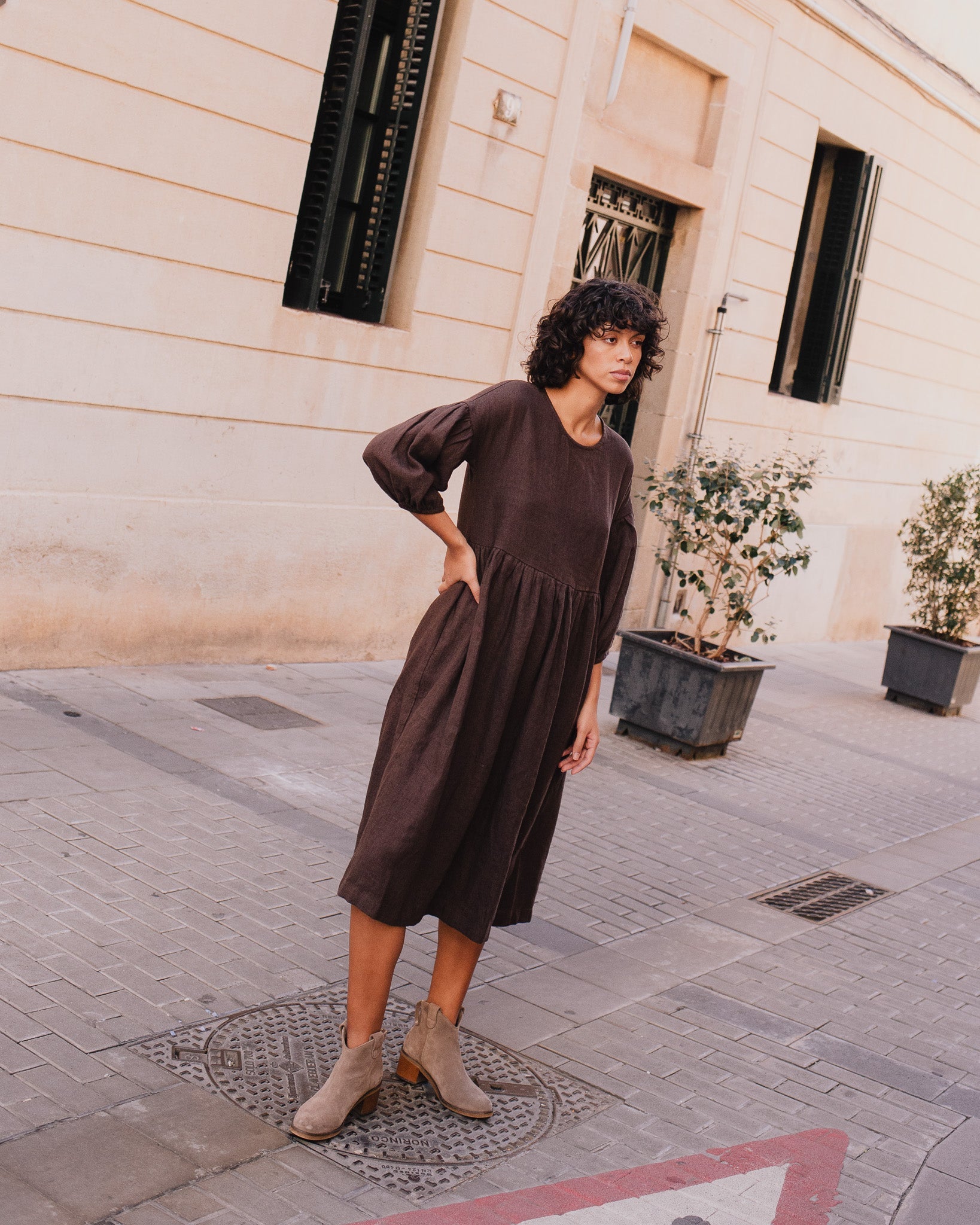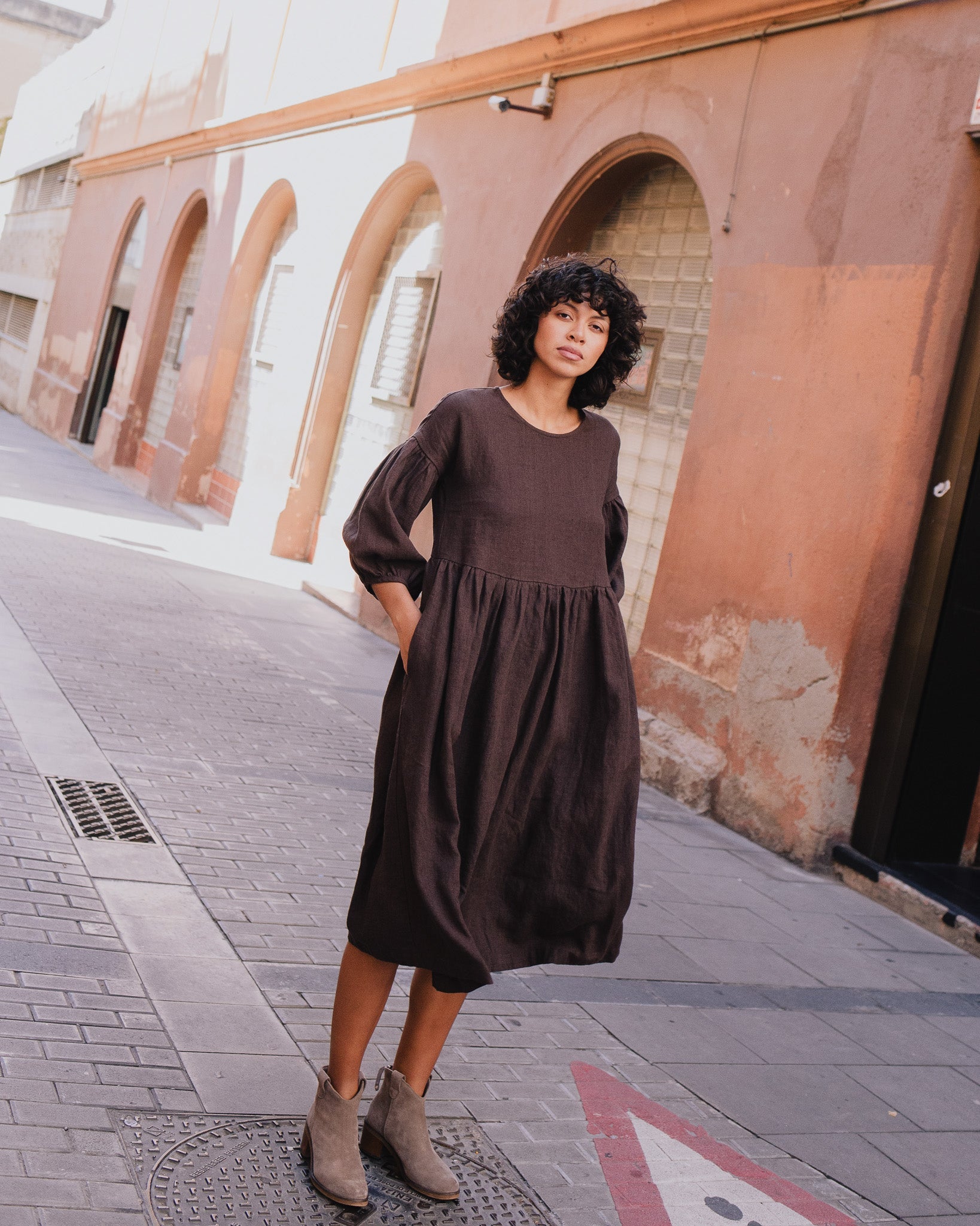 • Model is size S/M (179 cm/5'.10.5") and wears a dress in heavy espresso.
