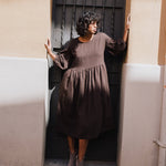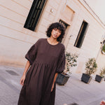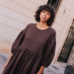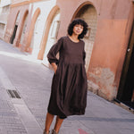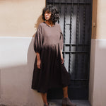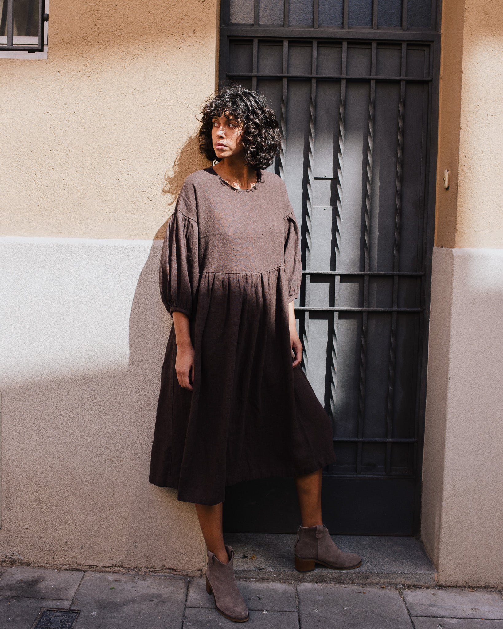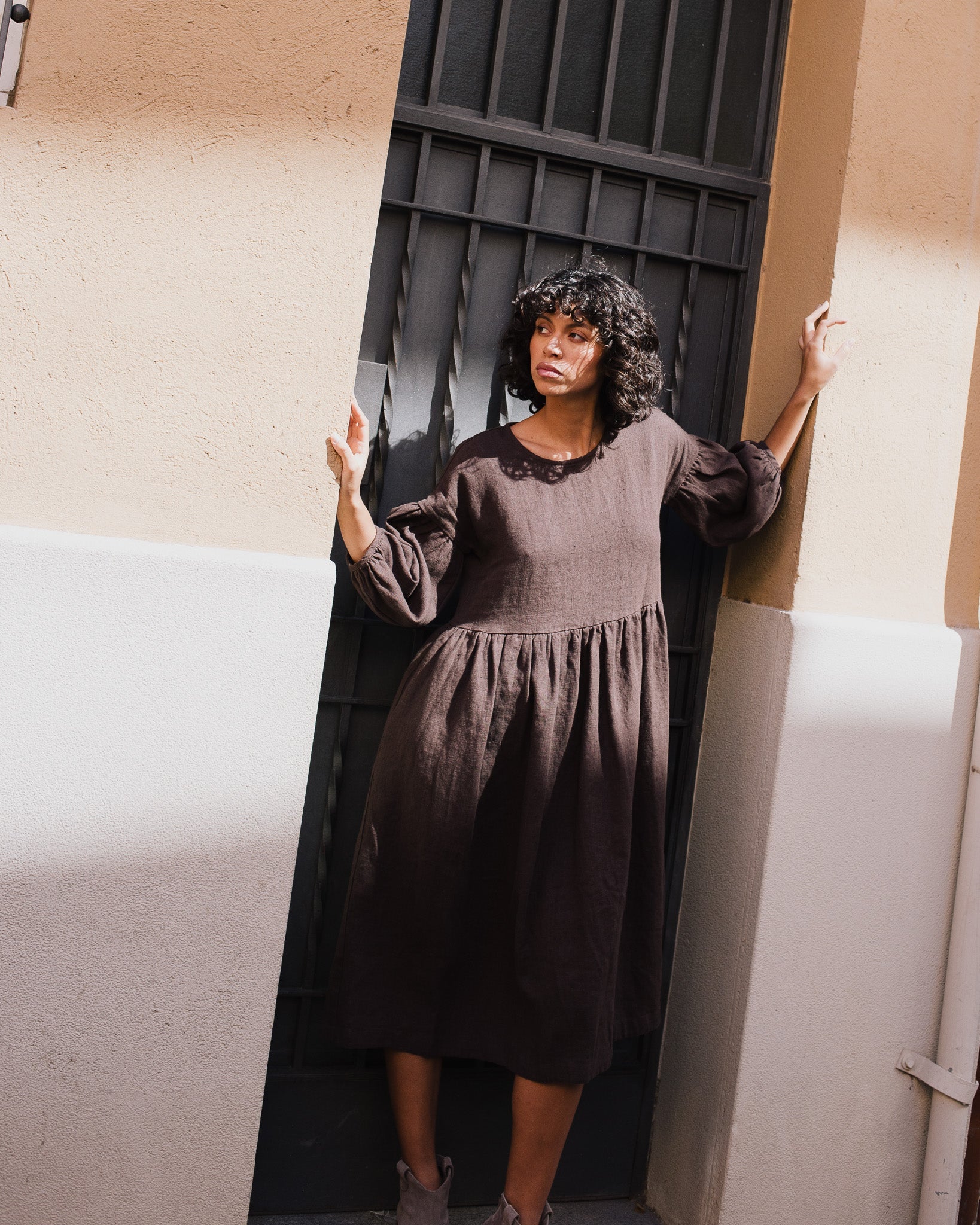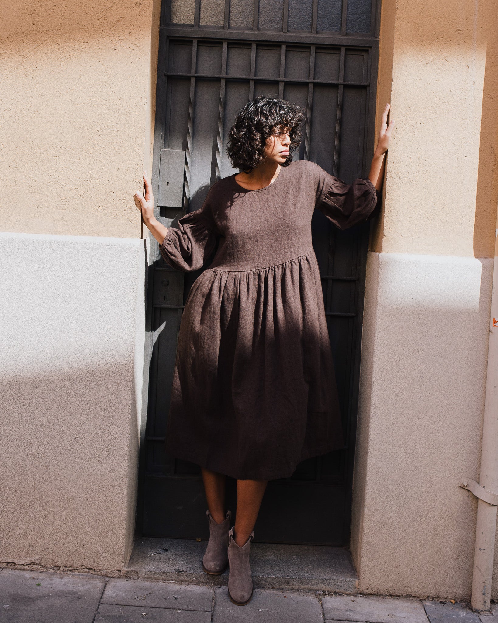 • Model is size S/M (179 cm/5'.10.5") and wears a dress in heavy espresso.