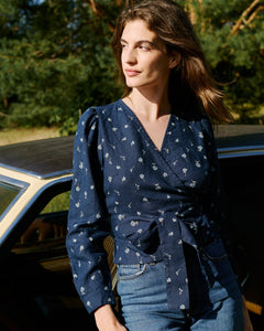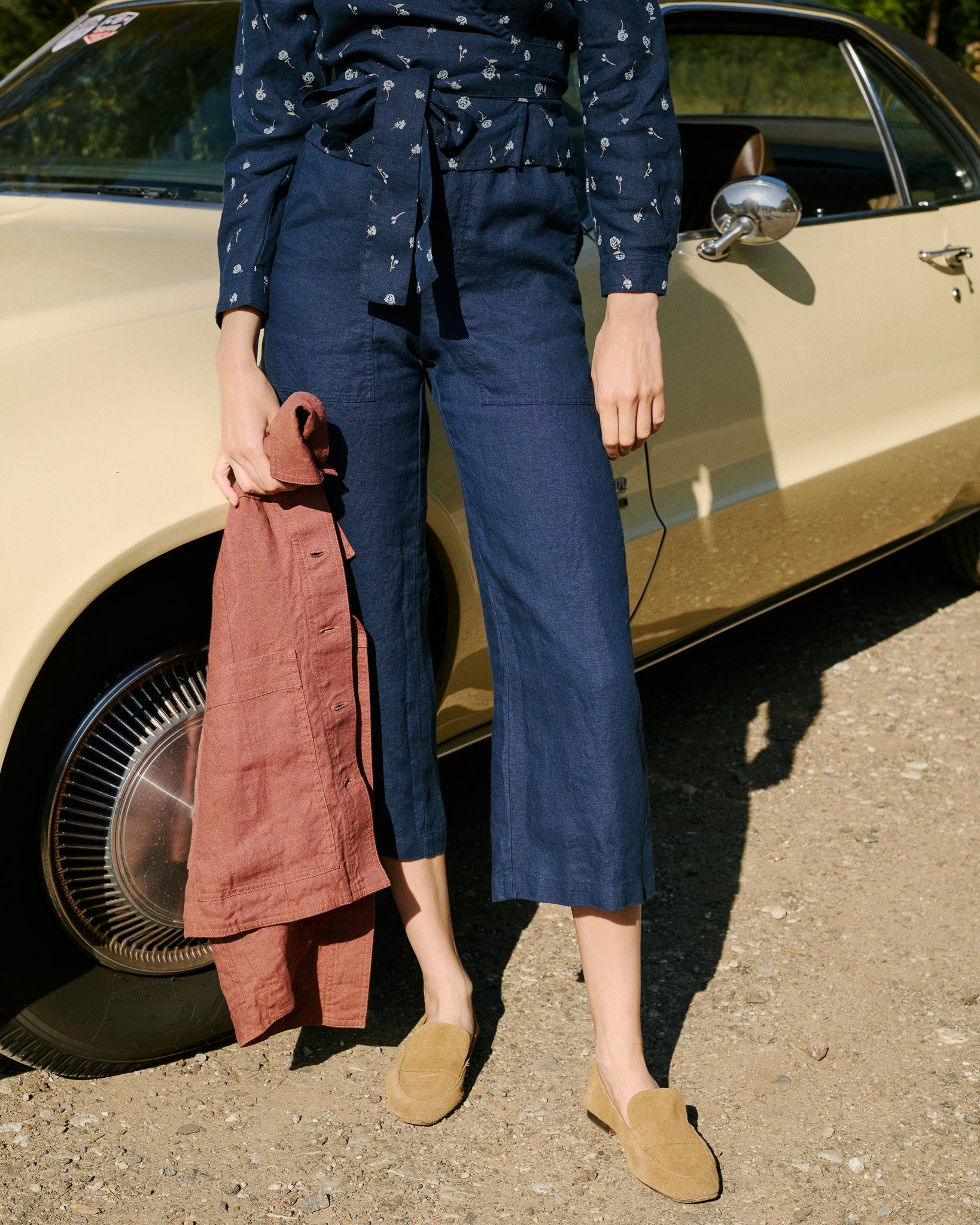 • Model is wearing Puglia pants in admiral blue, paired with Maya top in midnight rose.