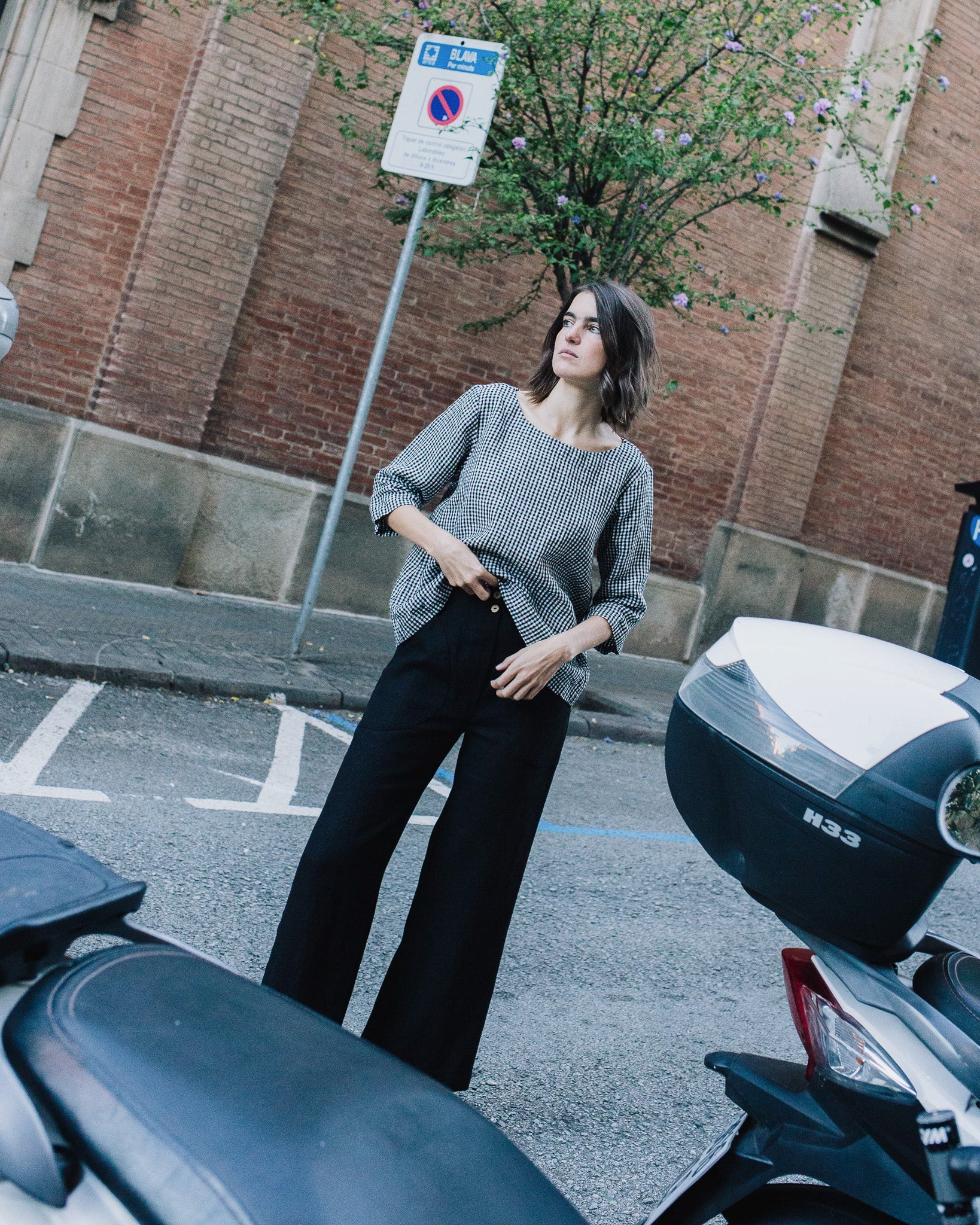 • Model is size S (170 cm/5',7") and wears the pants in heavy black.