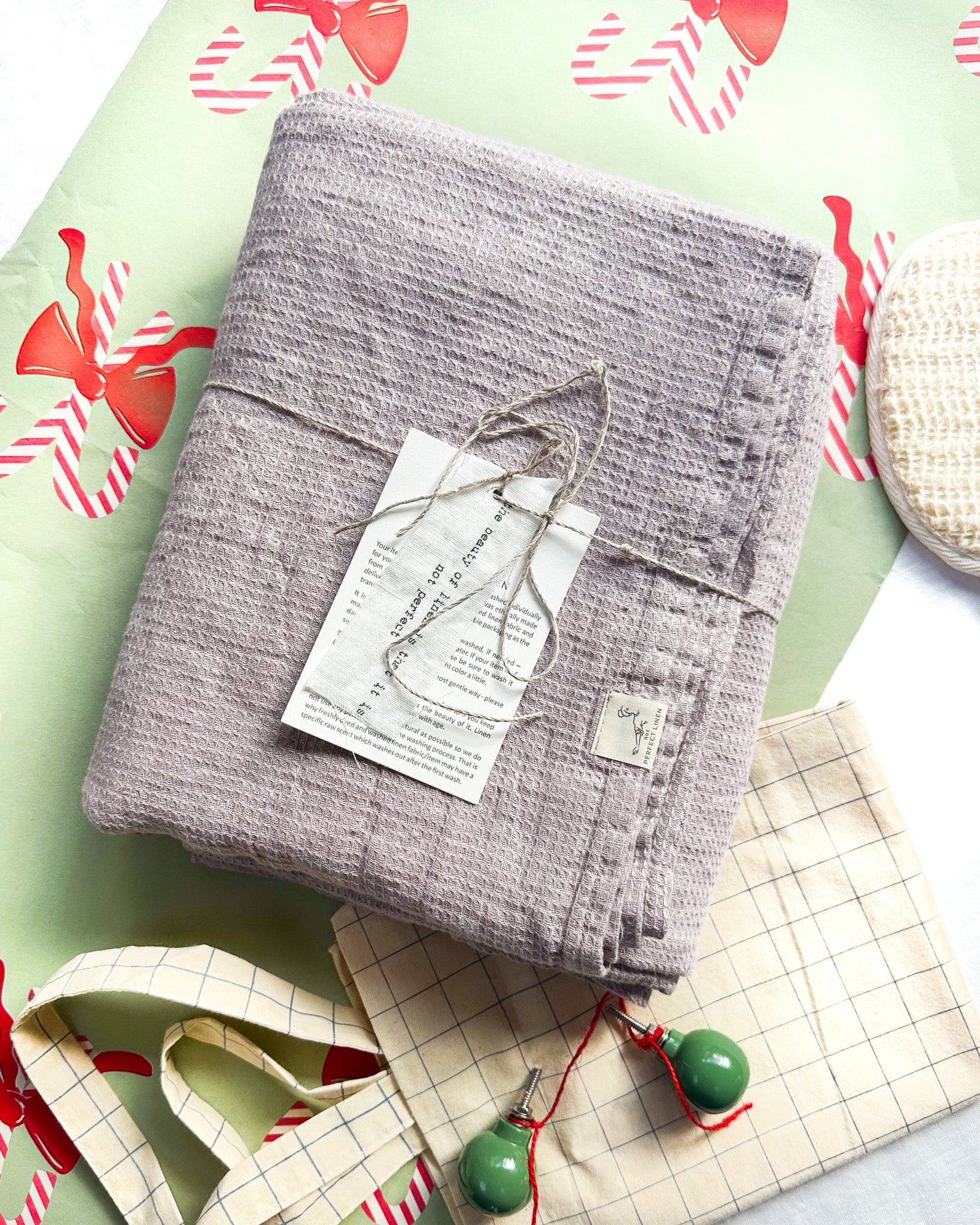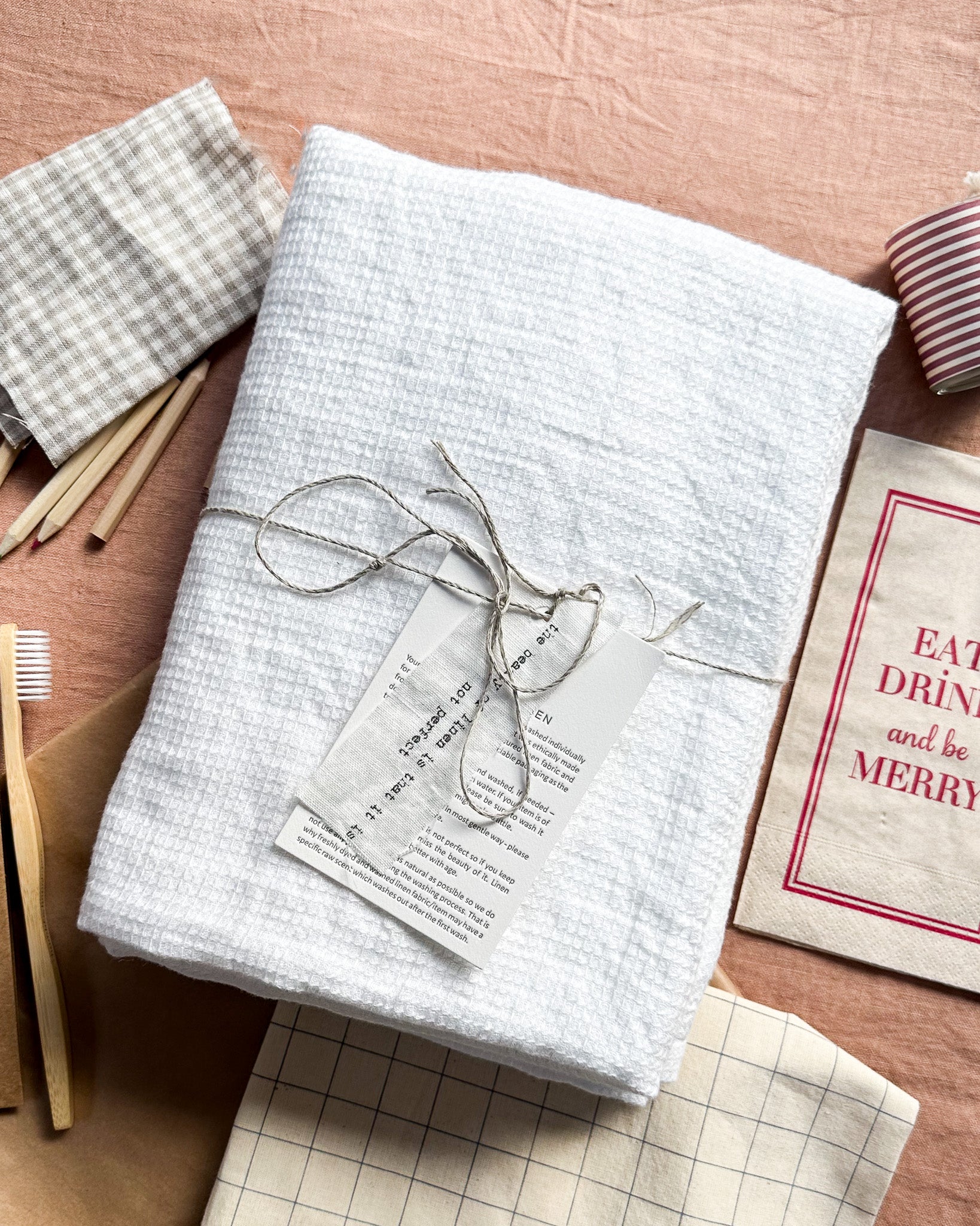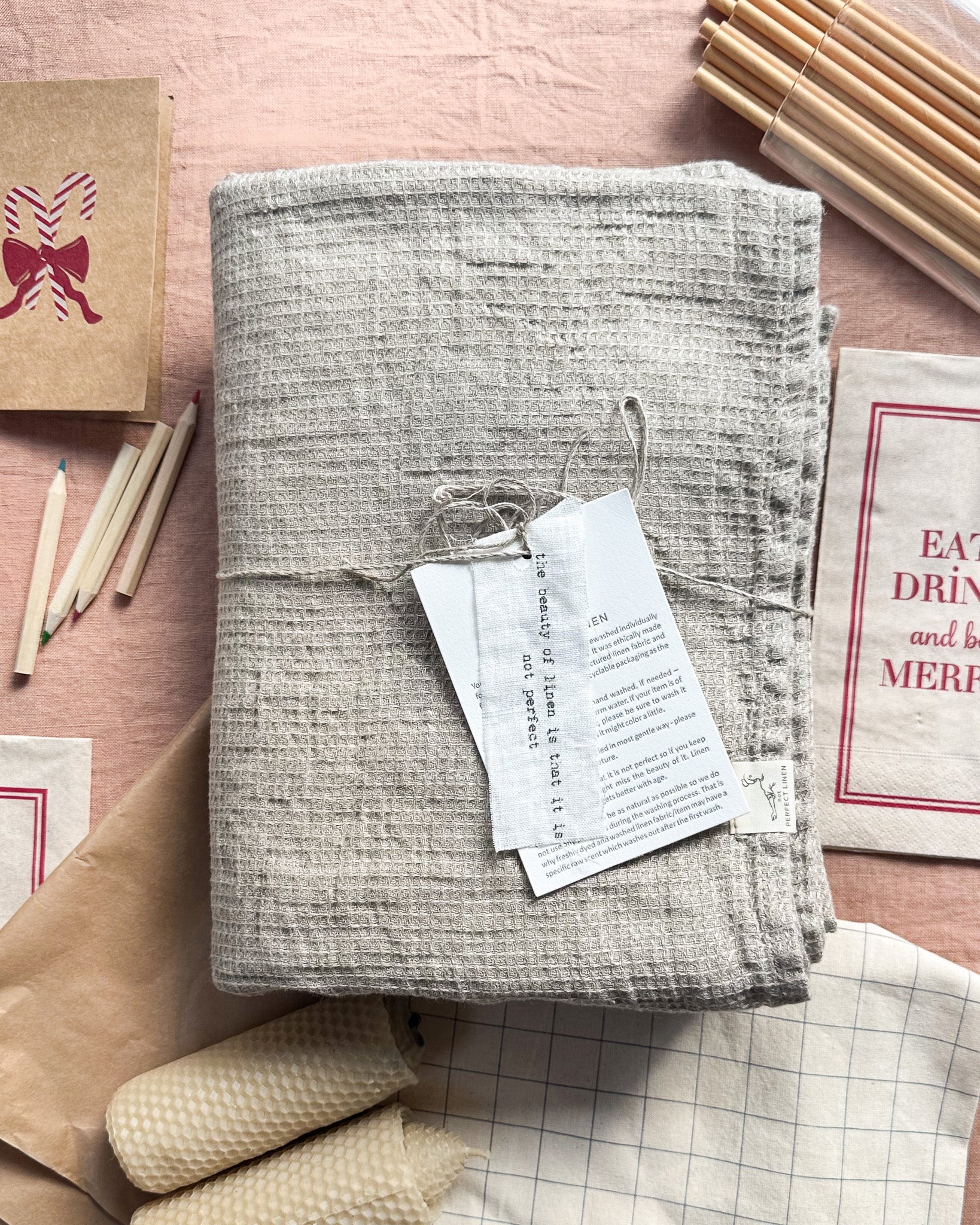 • Washed, soft waffle-weave bath towel made of 100% natural linen.