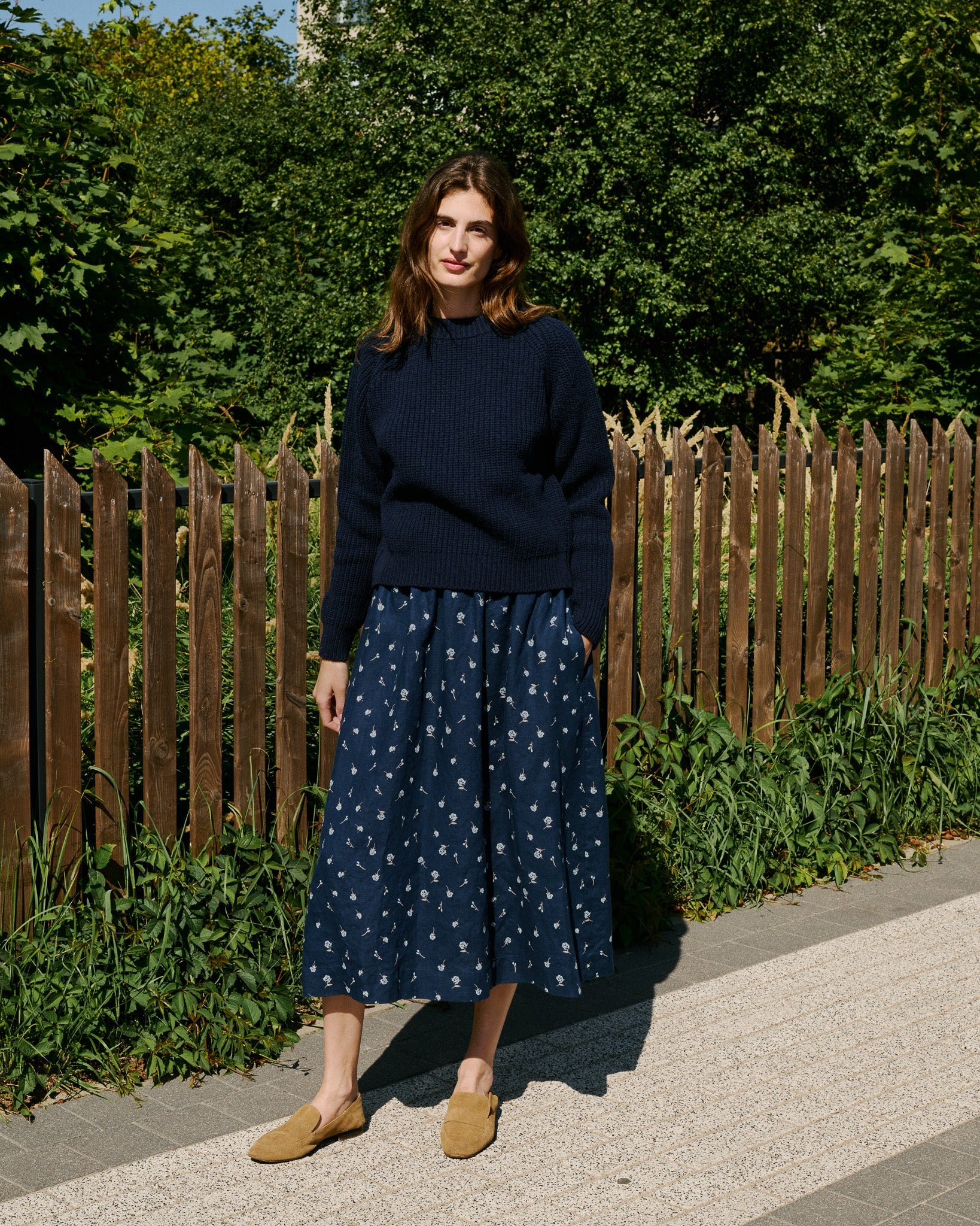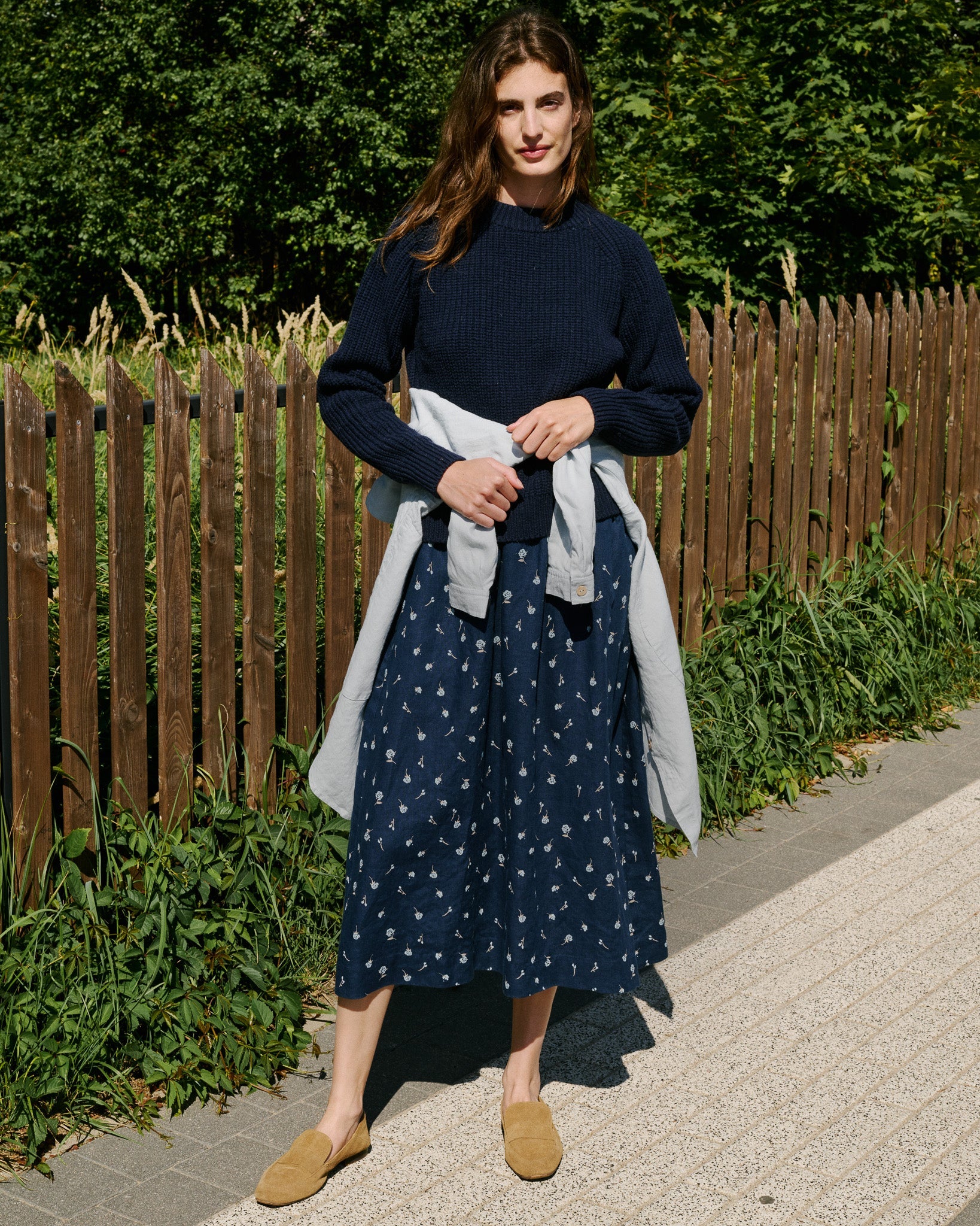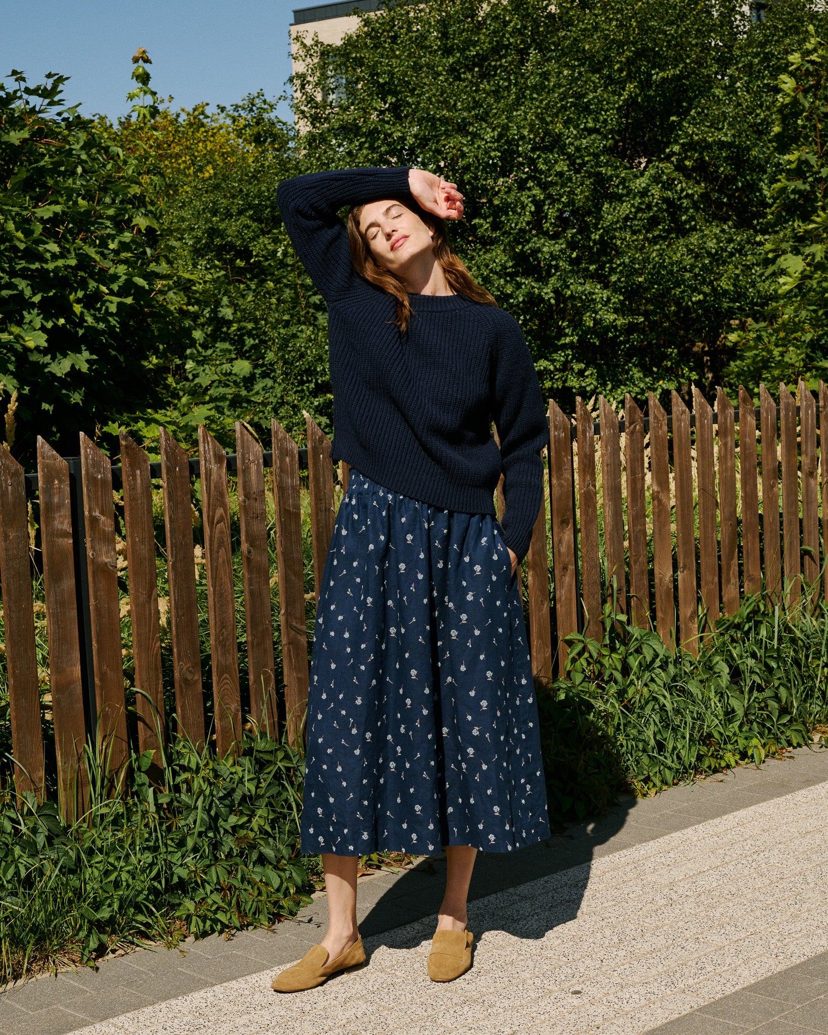 • Comfortable, gathered, a-line, midi-length skirt with an elastic waistband. And...drumroll please...it has pockets!