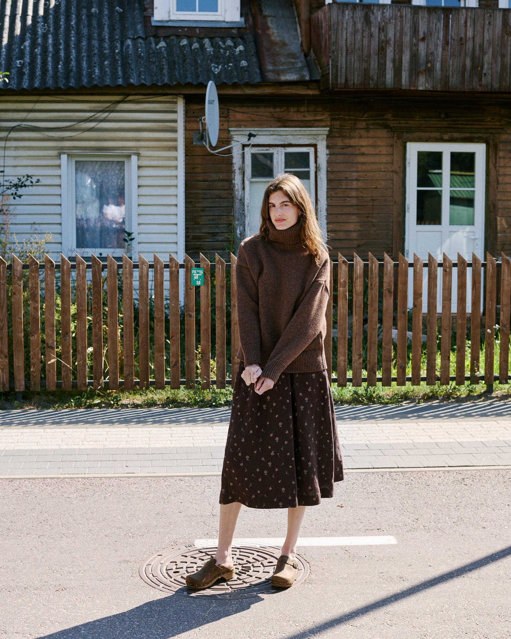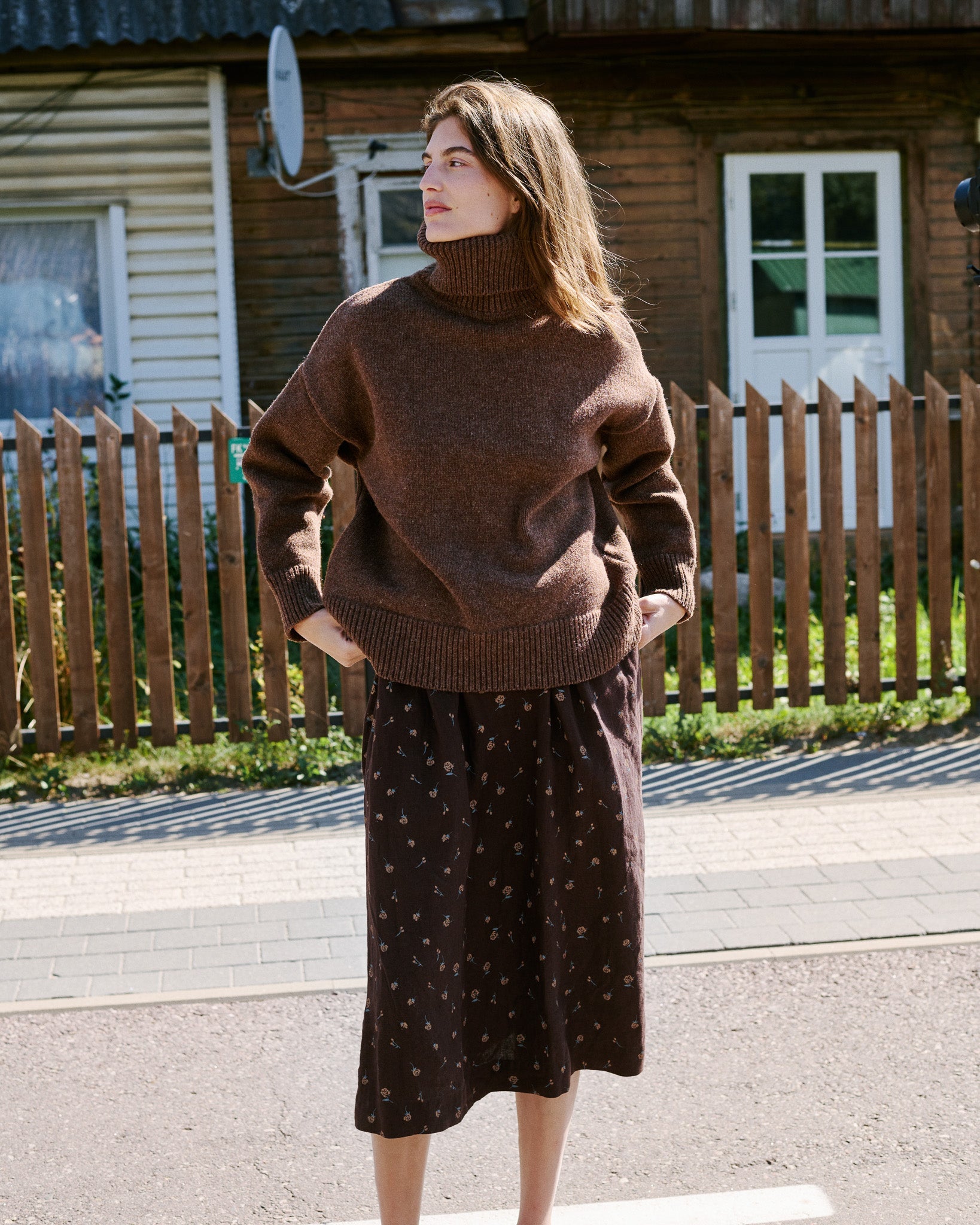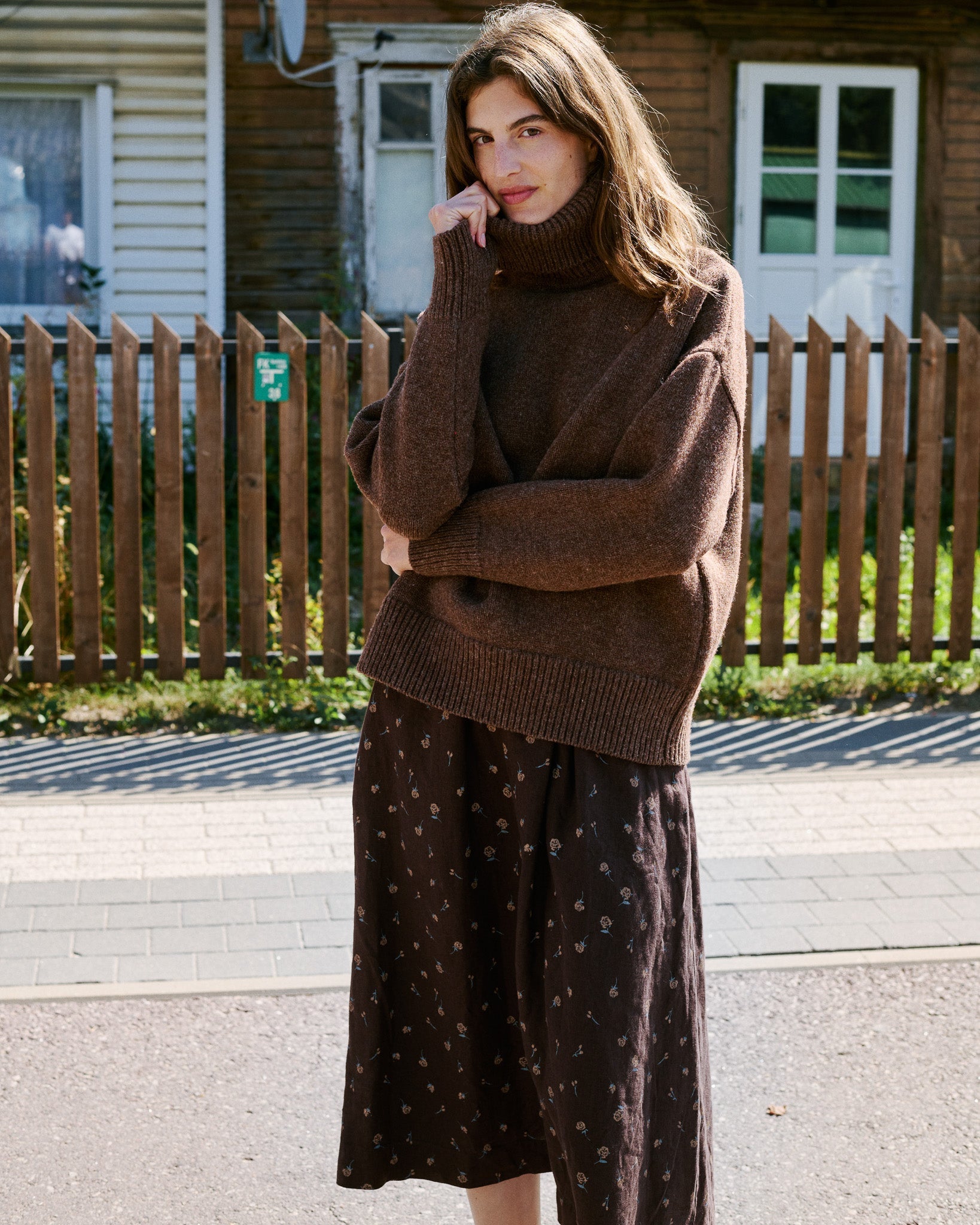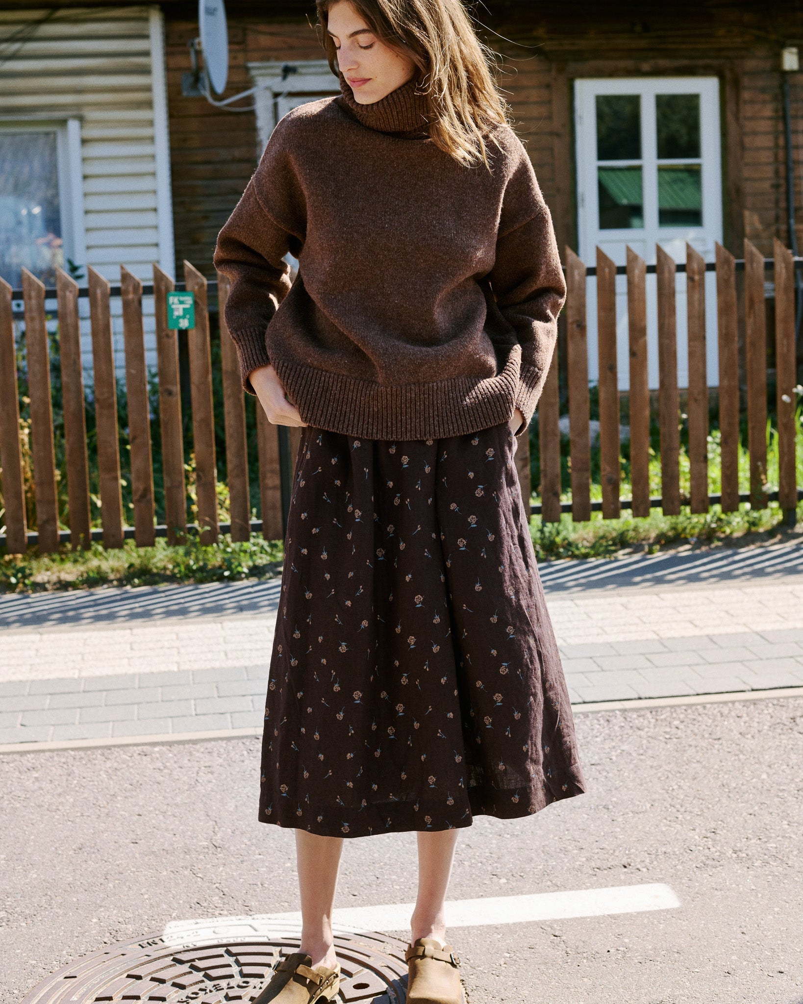 • Model is wearing a skirt in espresso rose.