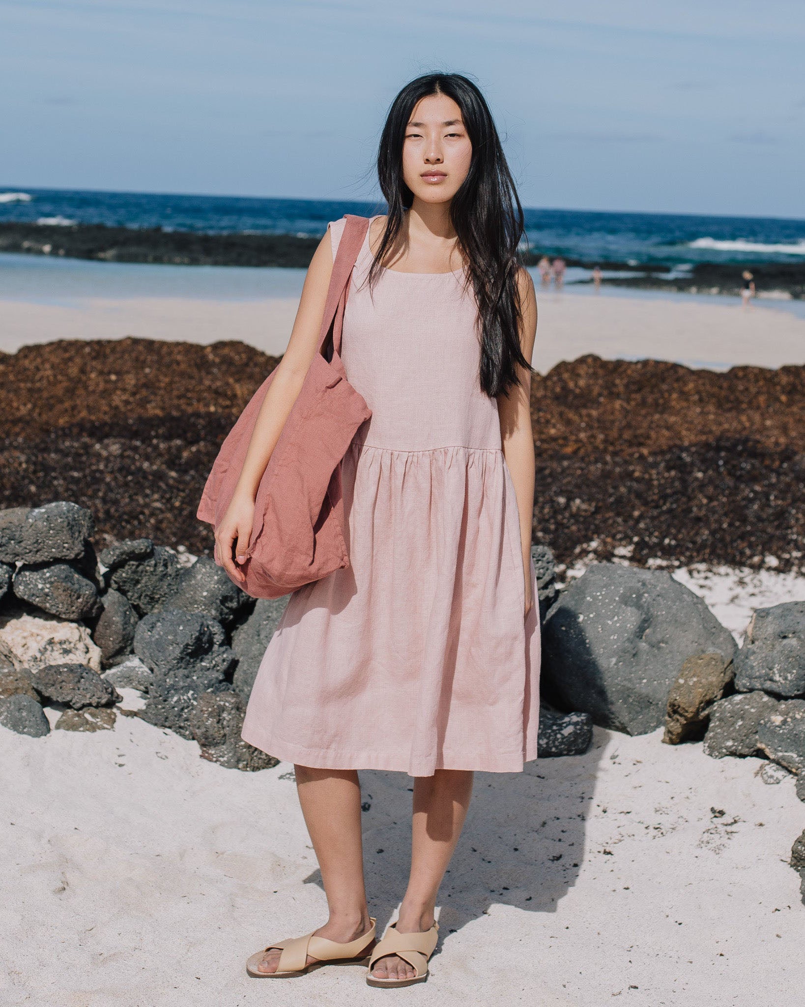 Midi SMOCK loose linen dress - notPERFECTLINEN EU