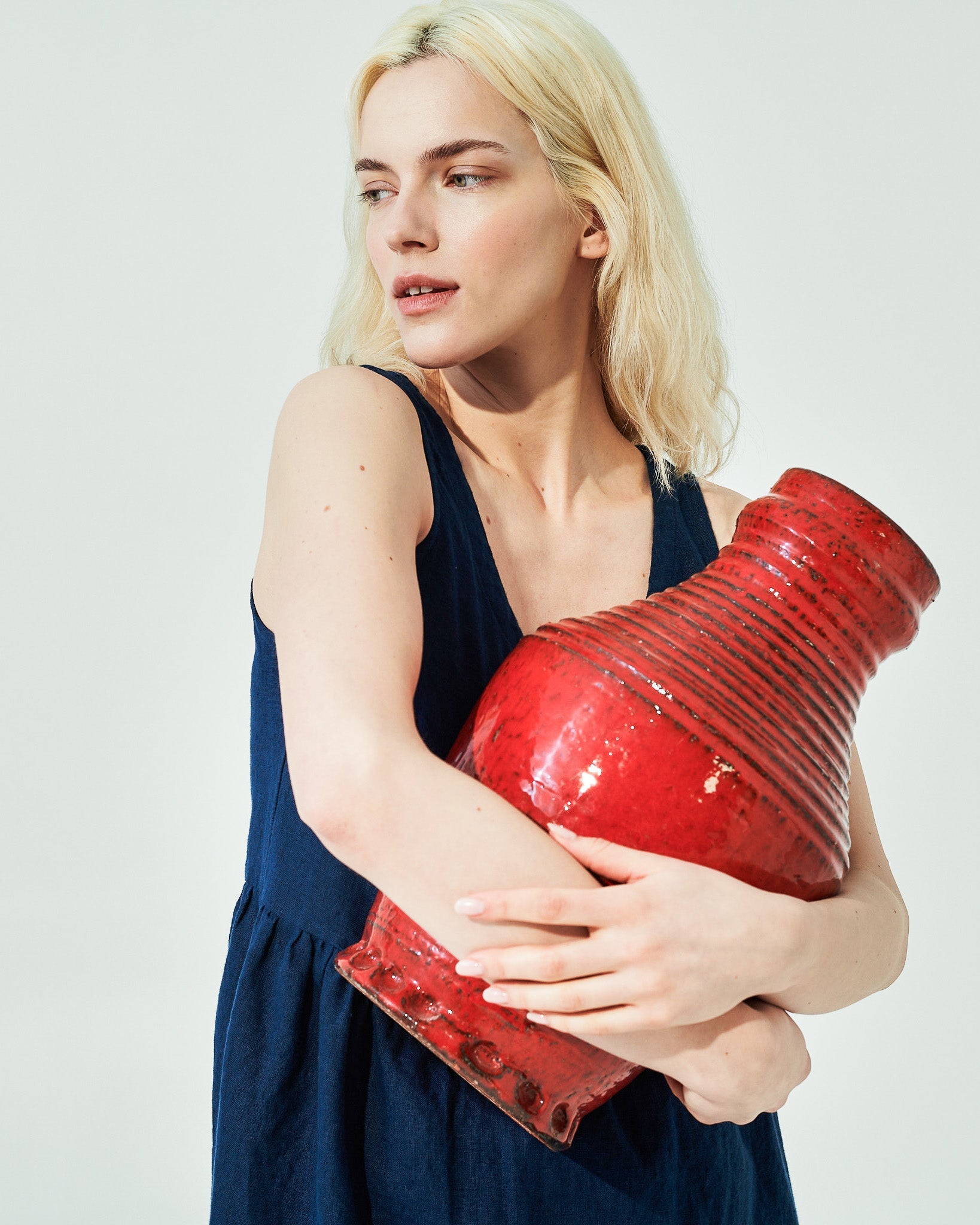 • Model is size S and wears a dress in size S in admiral blue.
