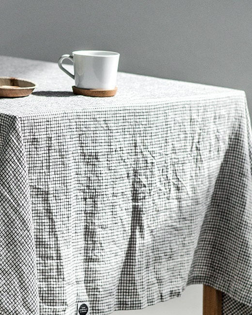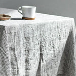 • Washed, soft linen tablecloth available in two lengths or custom-made to your specifications.