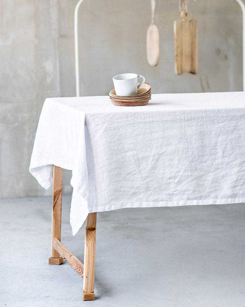 Washed, soft linen tablecloth available in two lengths or custom-made to your specifications.